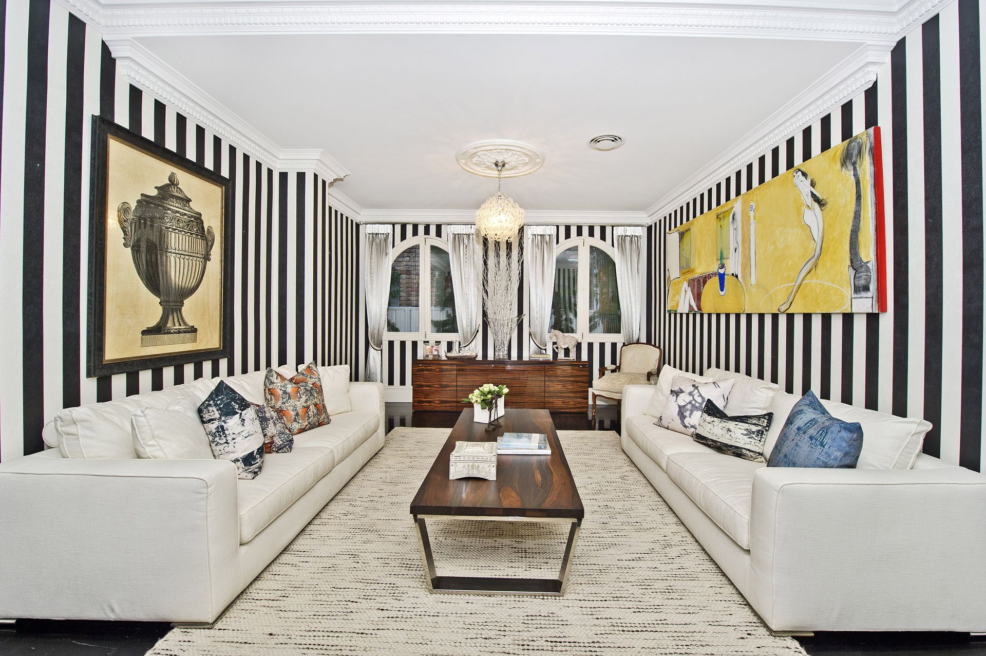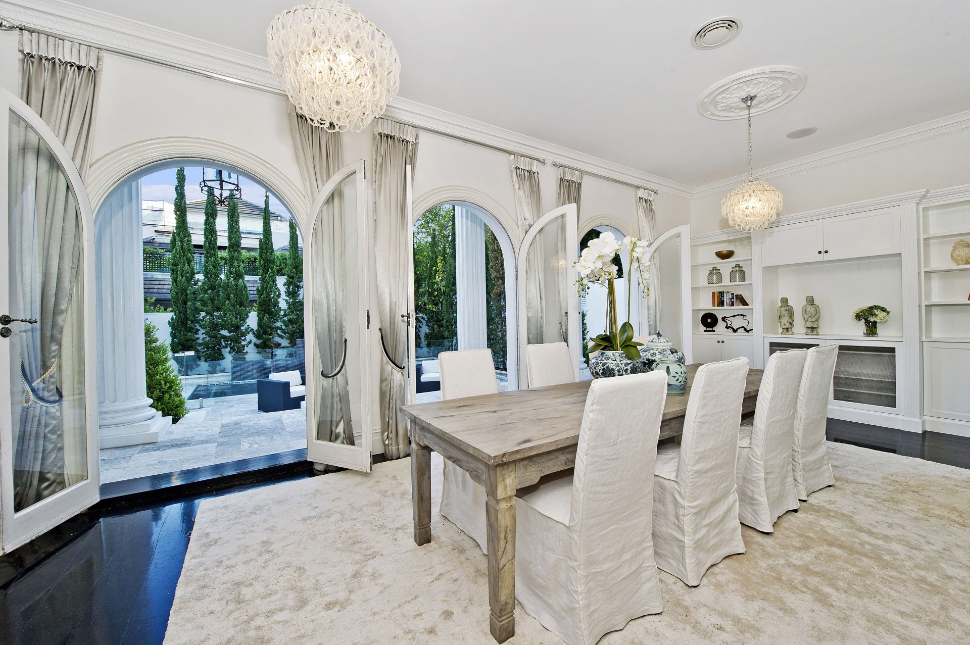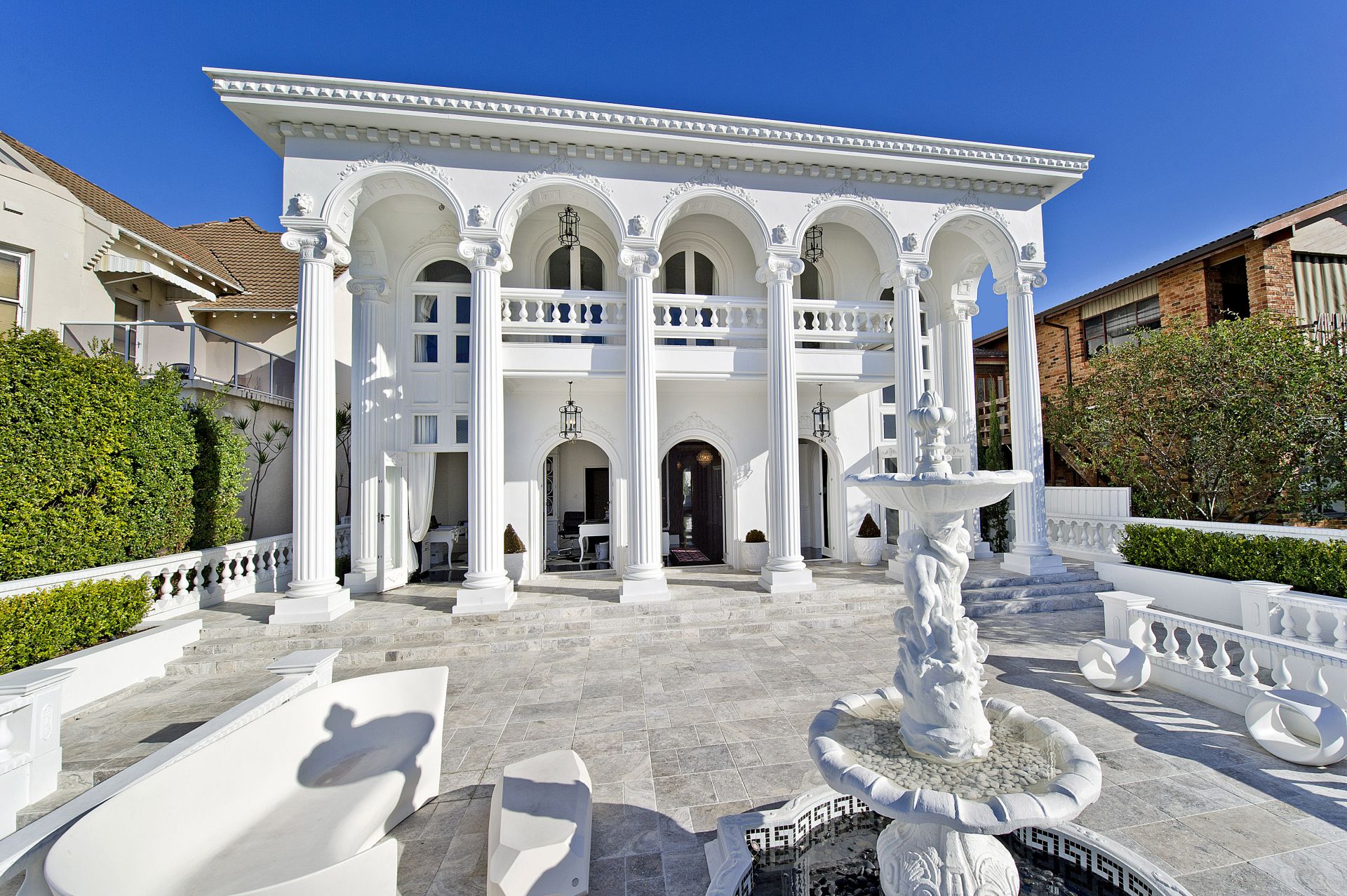 One of Sydney's most celebrated residential icons, Chateau de Benelong combines the elegance of a European palazzo with the grandeur and luxury of a Hollywood mansion. With a commanding elevated setting and impressive neo-classical facade, the palatial residence faces north with sweeping views over the harbour from its sun-filled interiors and signature columned terraces. Built by Lesley Santy in the Hollywood Regency style, this landmark property has undergone an extensive custom renovation to create a truly spectacular residence.