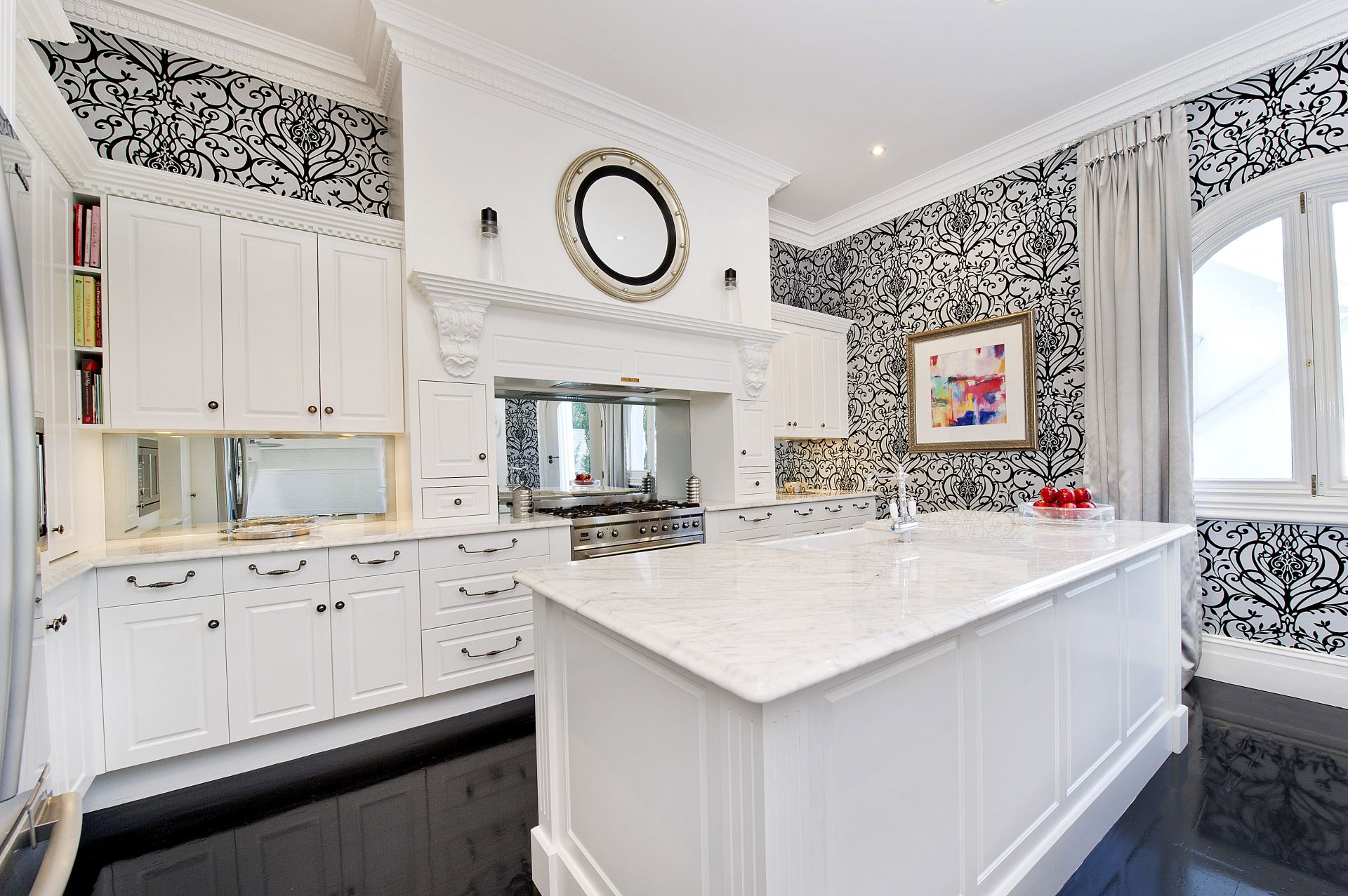 - Formal & casual living zones, custom French Provincial kitchen