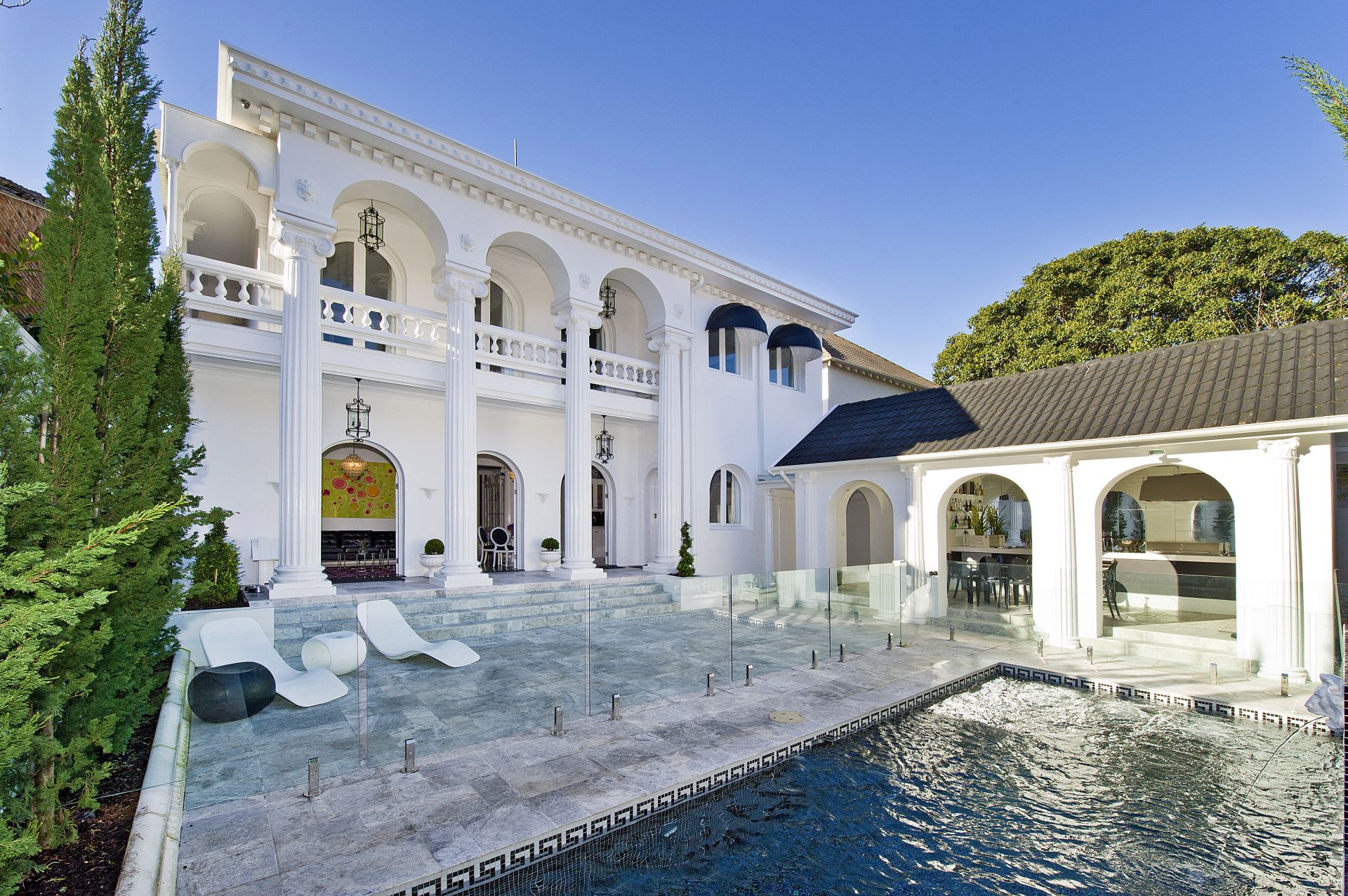 - Heated mosaic-tiled pool, home theatre, gym/yoga room
