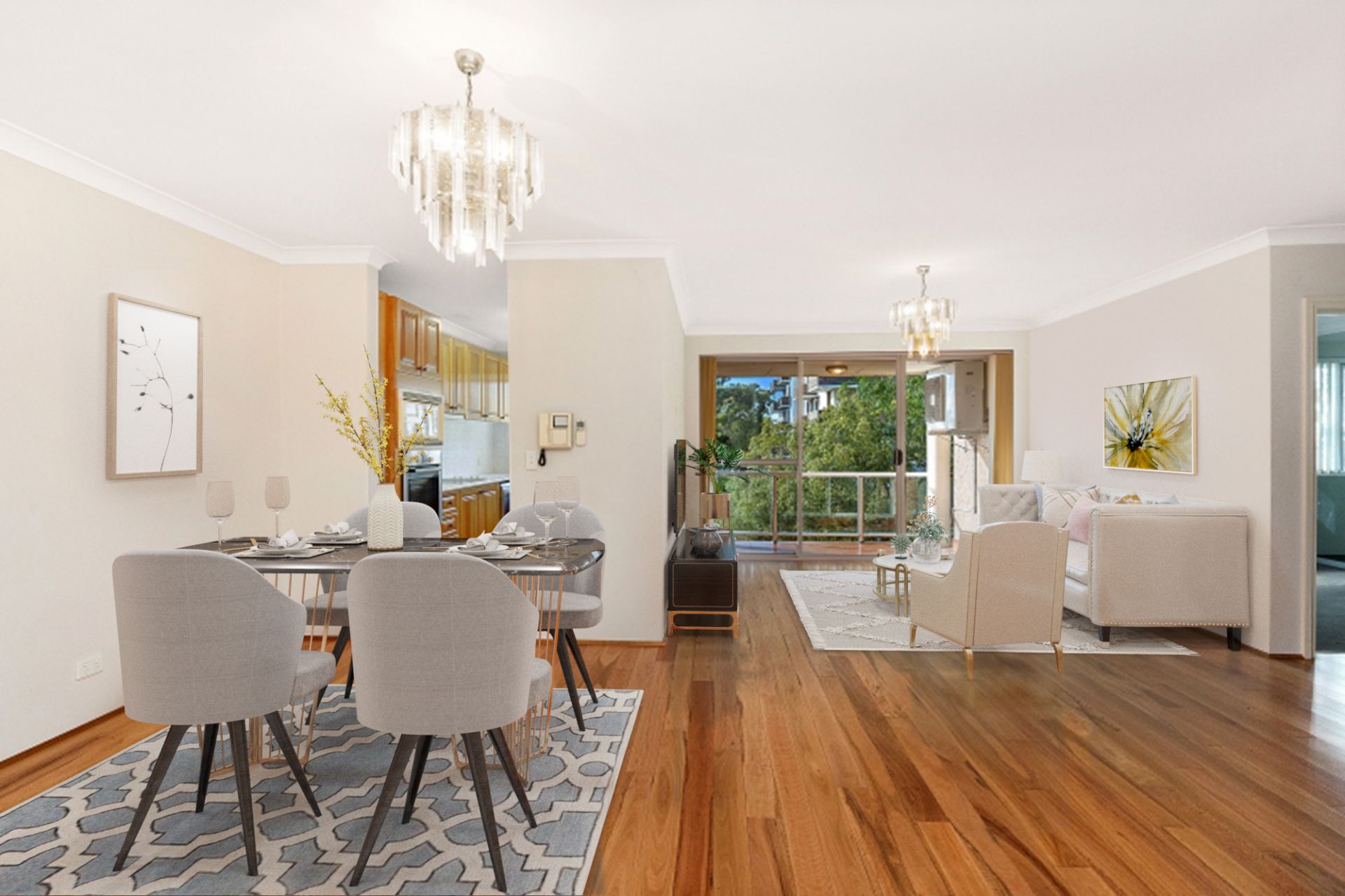 - Spacious living and dining room leading on to a large balcony