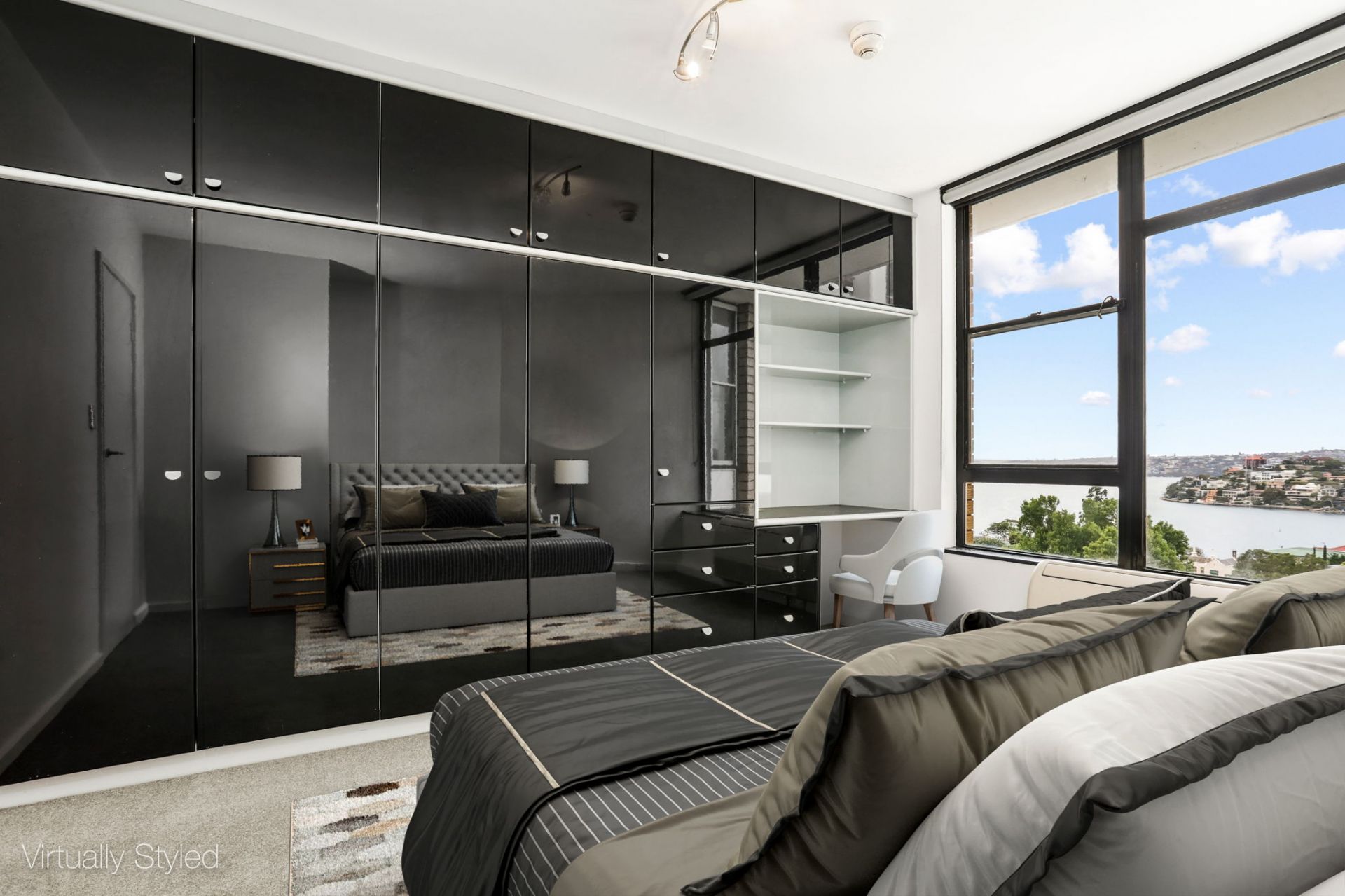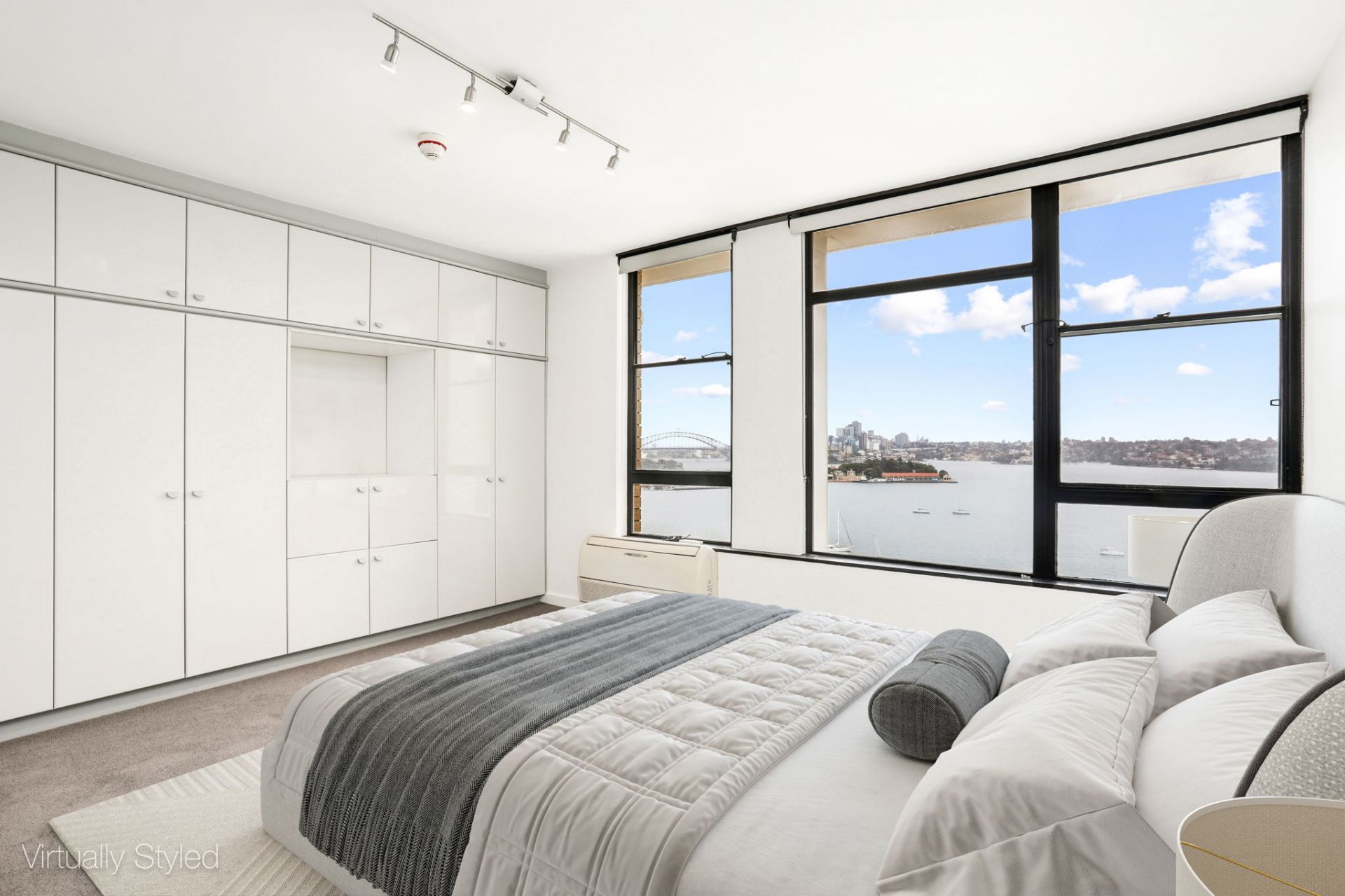 This property offers three generous bedrooms, the master with private en suite and wall to wall built-ins with opera house and harbour bridge views. Bedroom two with main harbour views and large built-ins, the third bedroom/study with opera house, bridge and Rushcutters Bay Views.