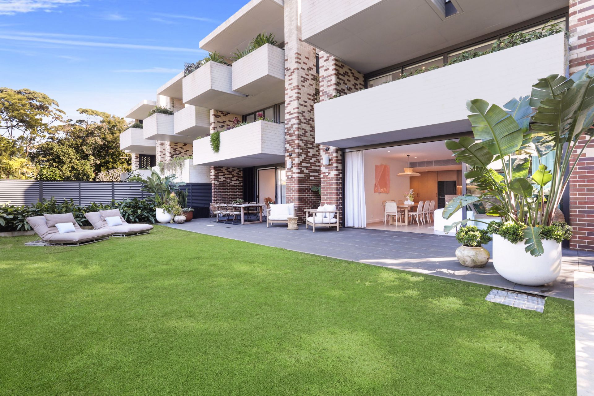 - Private Landscaped garden sanctuary with dining patio and level lawn