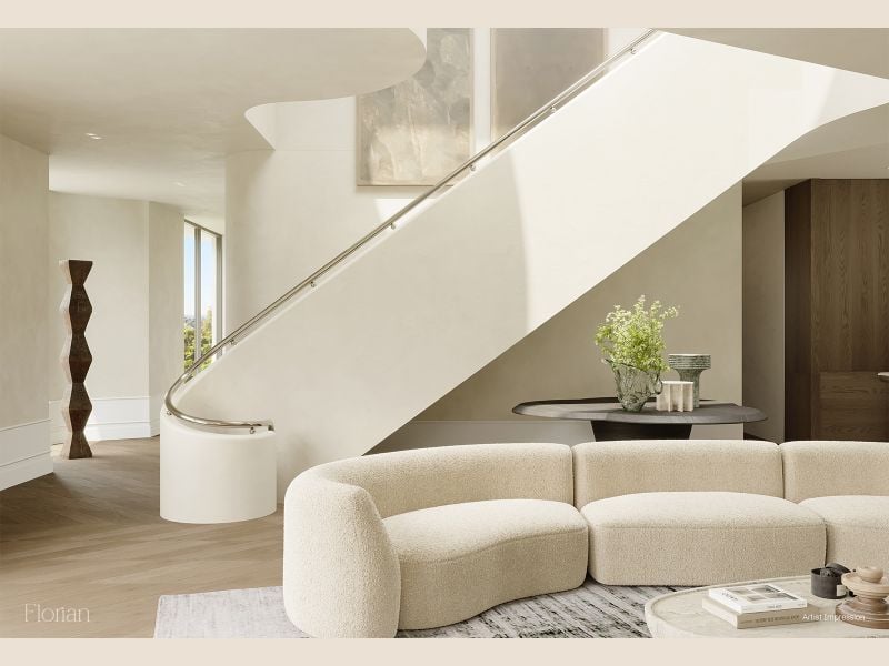 Set parkside in Bellevue Hill, Florian will be an architectural landmark that celebrates nature & craftsmanship in equal measure. Designed by CDArchitects, the building's organic curves will echo the surrounding landscape, while Richard Stanisich interiors create calm & refined sanctuaries.