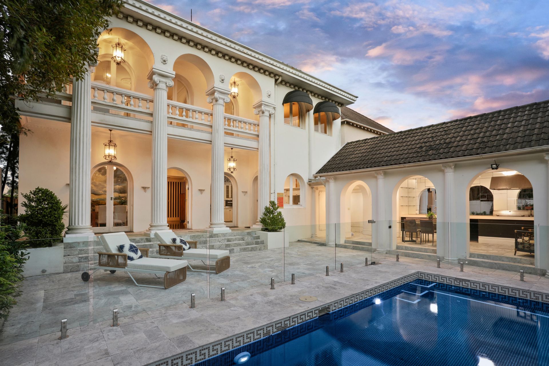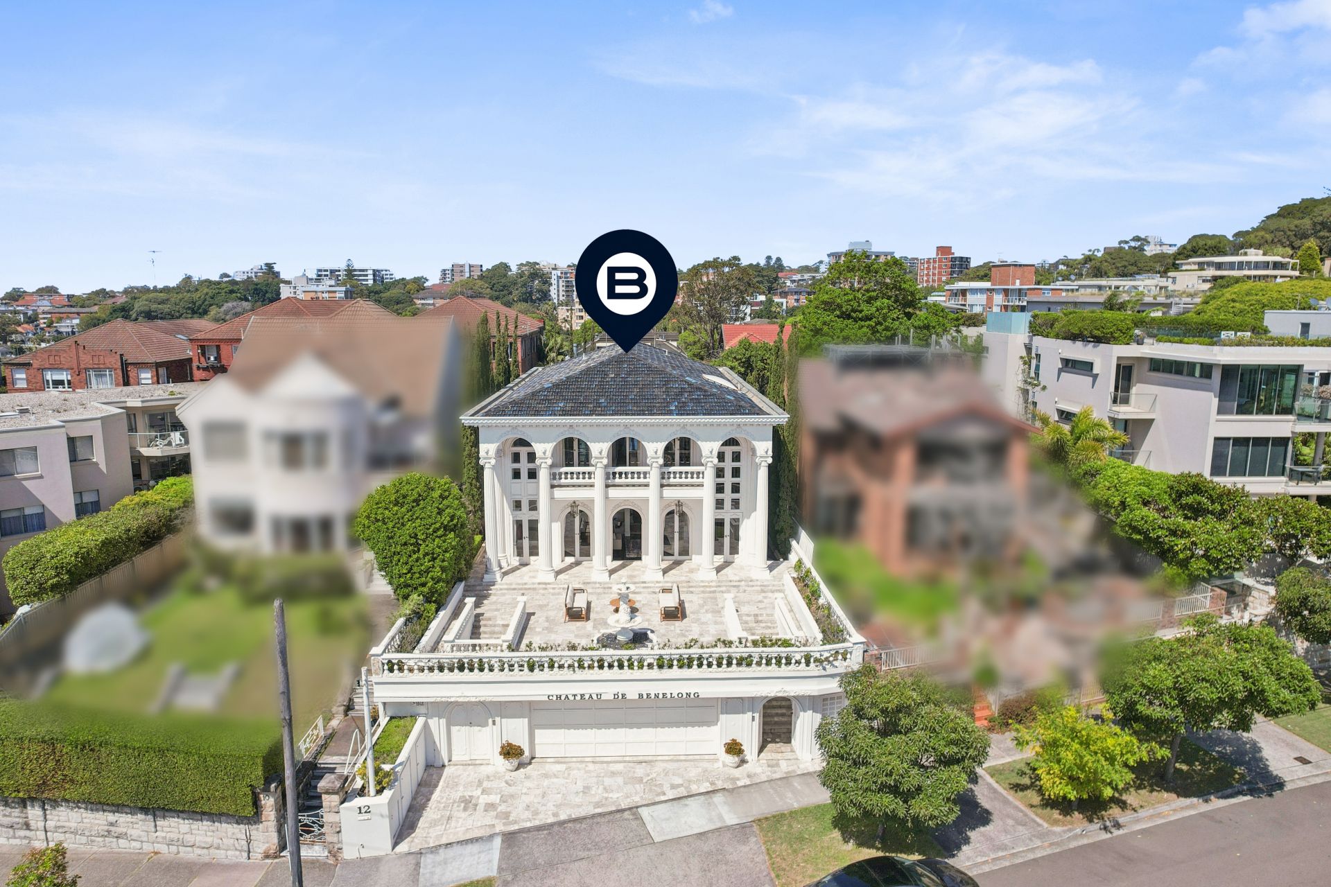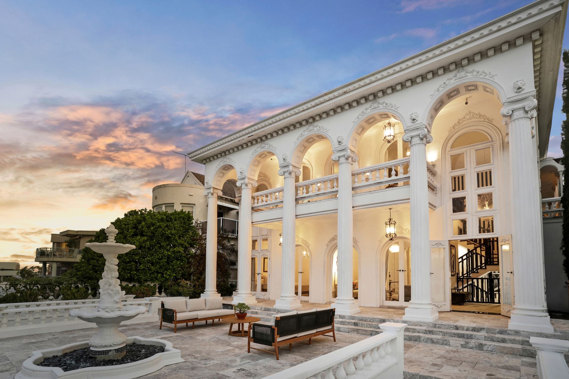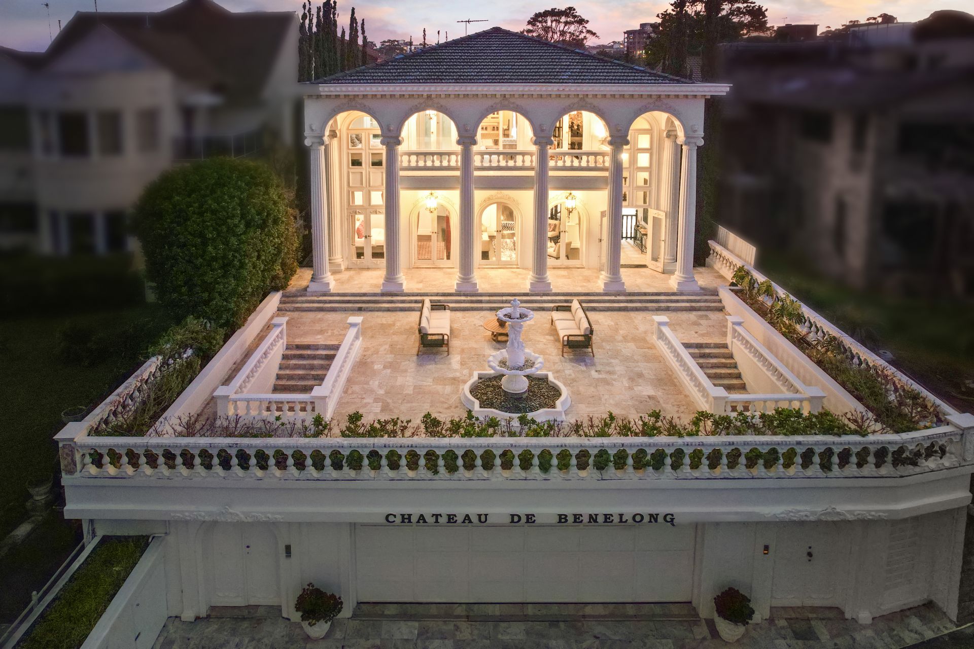 Chateau de Benelong stands as one of Sydney's most iconic residences, seamlessly marrying the timeless sophistication of a European palazzo with the lavish grandeur of a Hollywood estate. Perched in a commanding elevated position, the property showcases a striking neo-classical façade and a coveted north-facing aspect, capturing breathtaking harbour views from its sun-drenched interiors and signature columned terraces.