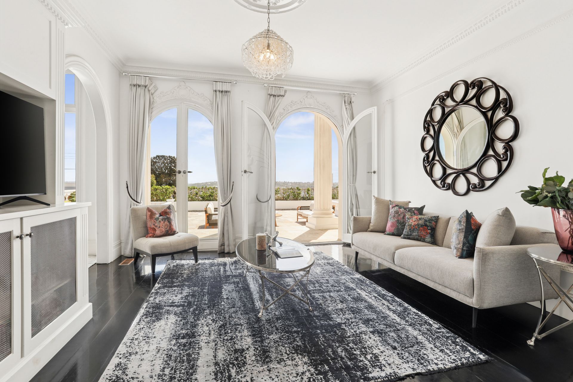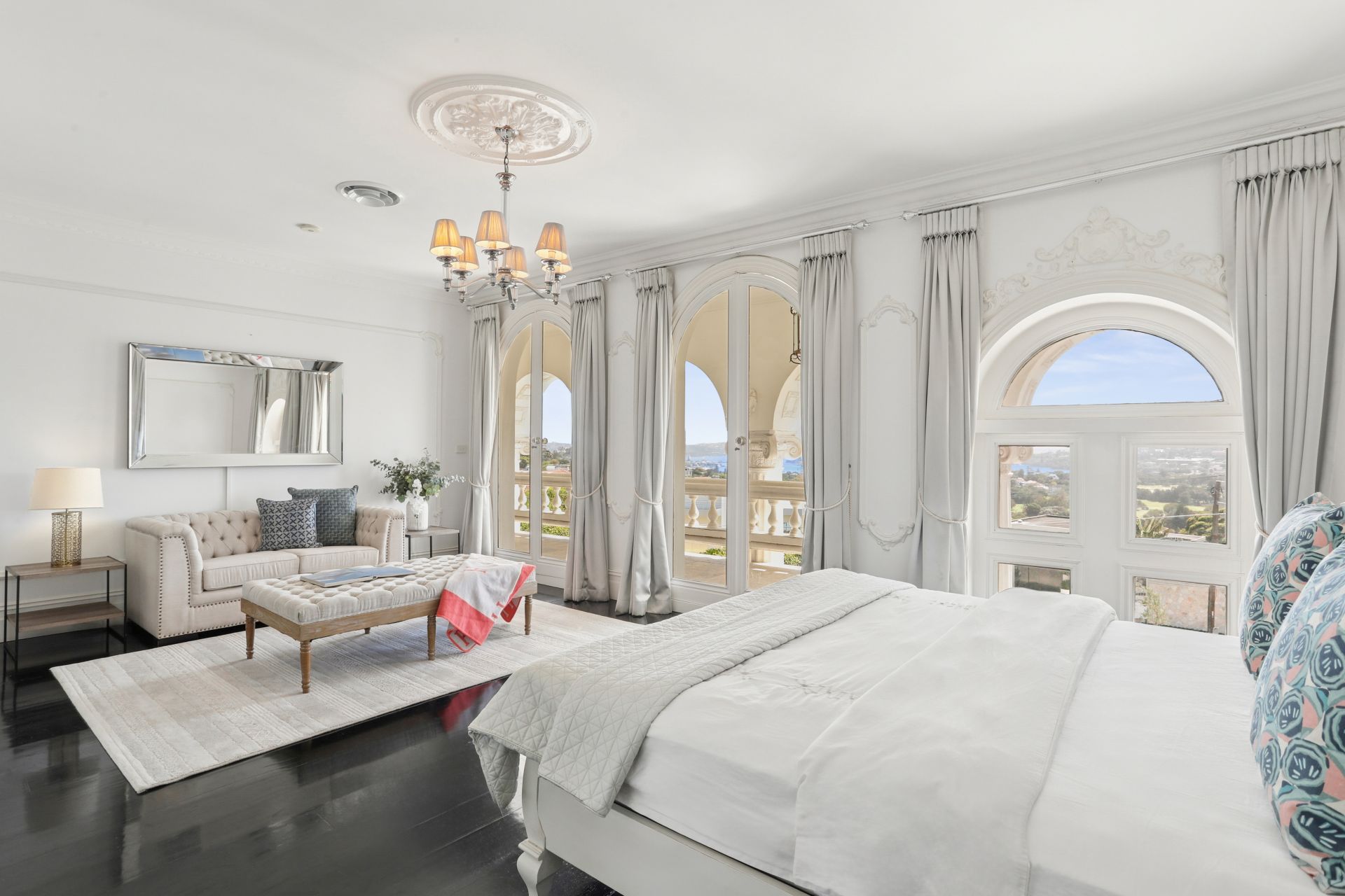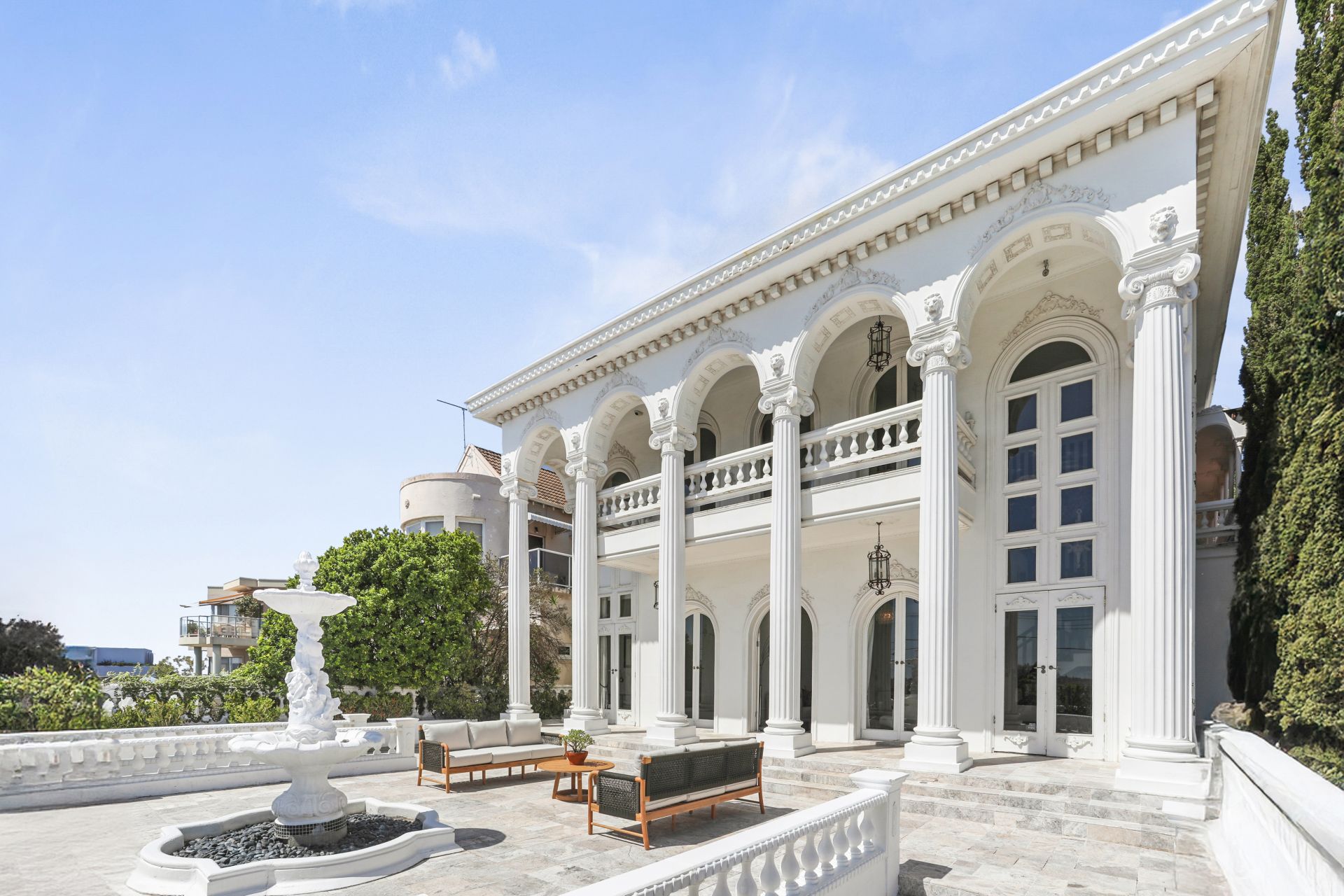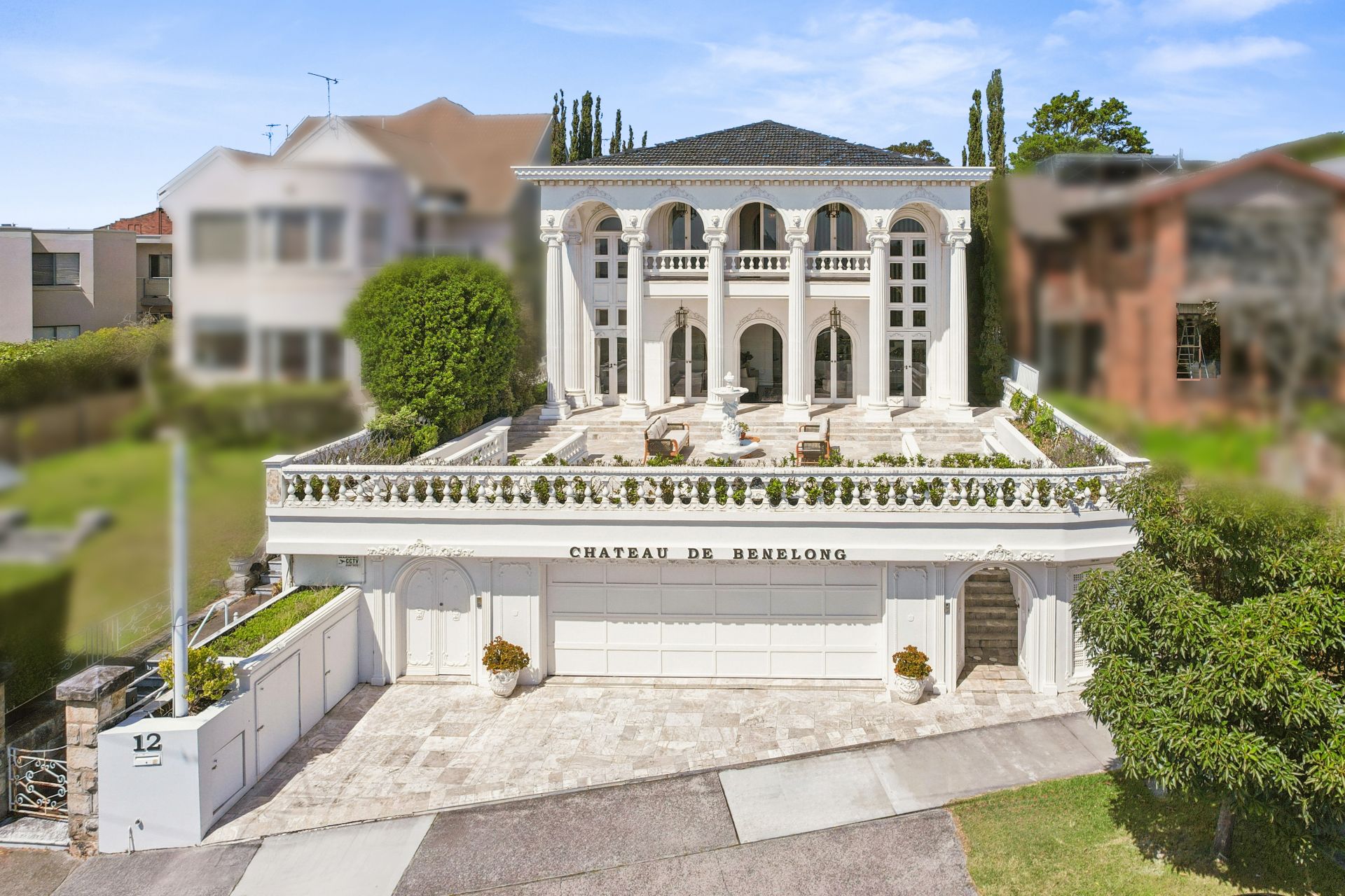 Chateau de Benelong stands as one of Sydney's most iconic residences, seamlessly marrying the timeless sophistication of a European palazzo with the lavish grandeur of a Hollywood estate. Perched in a commanding elevated position, the property showcases a striking neo-classical façade and a coveted north-facing aspect, capturing breathtaking harbour views from its sun-drenched interiors and signature columned terraces.
