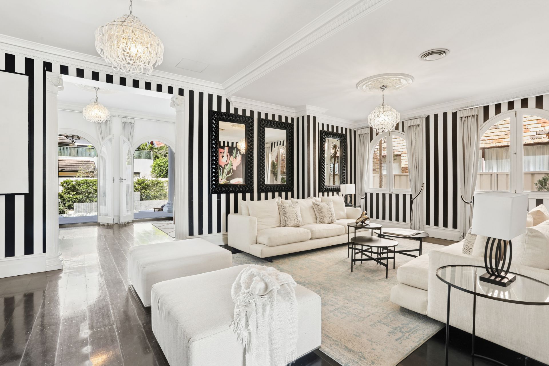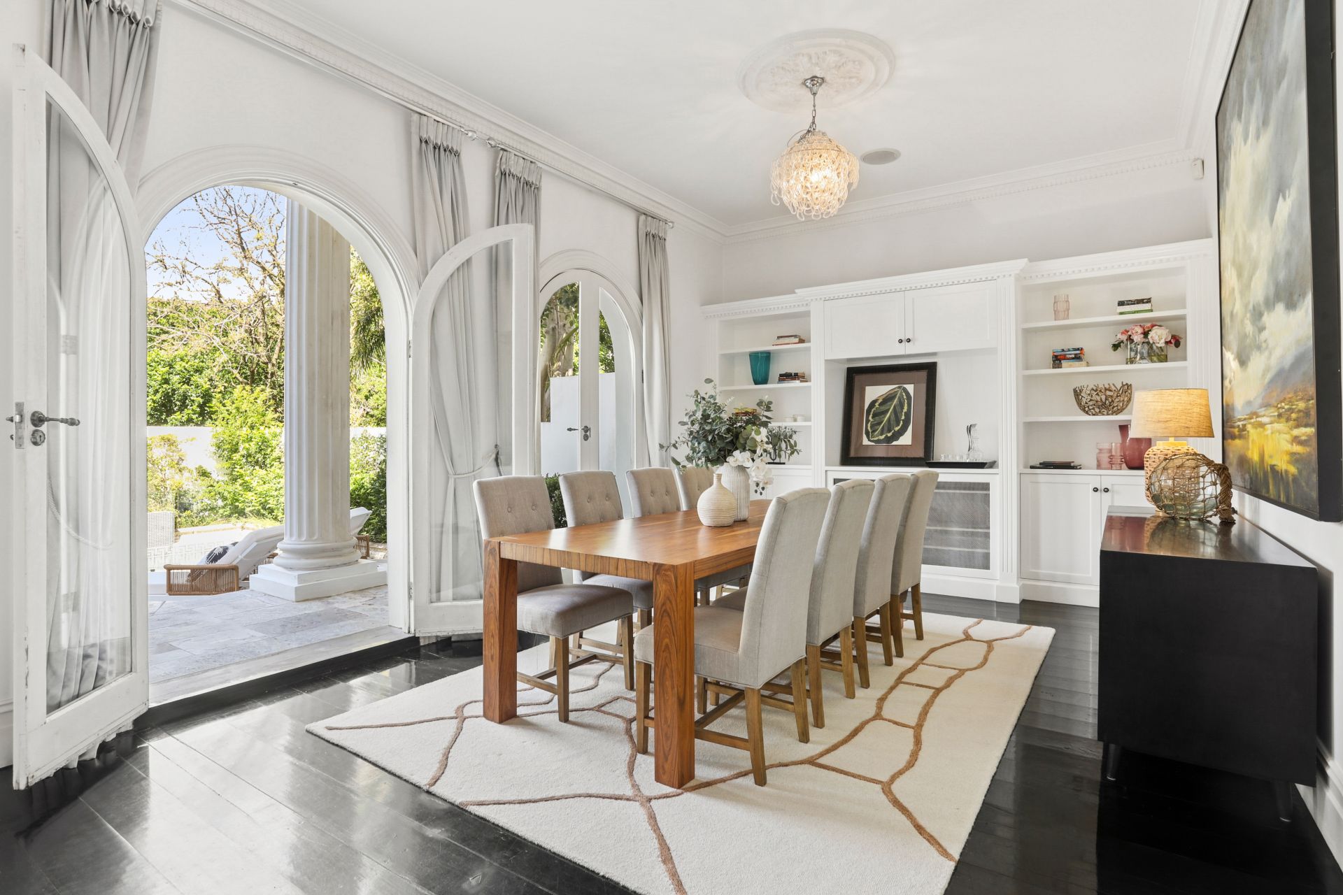 Adding to its allure, the residence features a beautifully appointed self-contained apartment, a pool cabana, a cinema room, a wine cellar, and a secure four-car garage. At its heart, a magnificent palazzo-style terrace provides an unrivaled setting for entertaining, all while showcasing uninterrupted views, making this one of Bellevue Hill's most unique offerings.