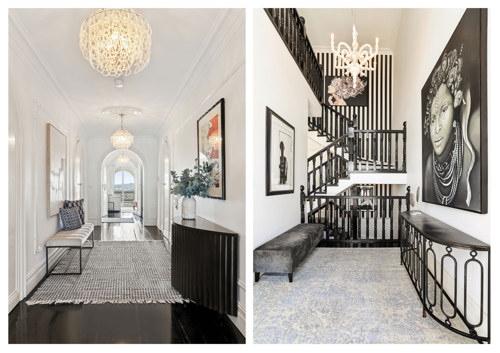 - Opulent interiors inspired by the home's theatrical design