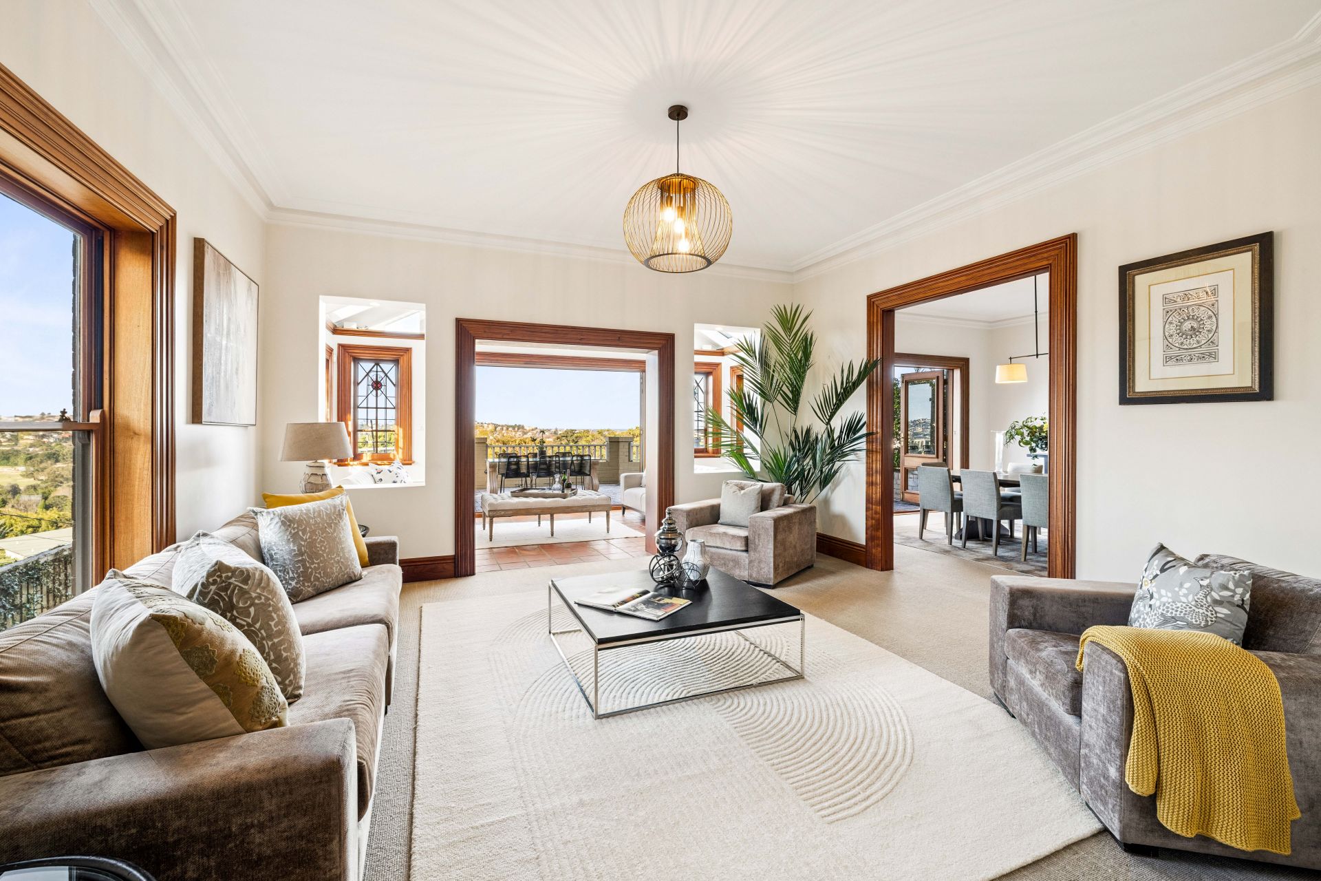 Thoughtfully crafted over three magnificent levels, this grand family residence boasts a perfect north east aspect with spectacular views over The Royal Sydney Golf Club to the harbour and beyond in a prestigious Bellevue Hill address. Showcasing classic craftsmanship combining refined grandeur and versatility, this impeccable residence features stately proportions with a vast array of formal and informal living and dining areas, while a grand entrance foyer, soaring ceilings and exquisite carved timber joinery add to its sense of scale and refinement. An expansive chef's cedar and granite kitchen with premium Miele appliances serves as the social heart of the home, while a series of breakout areas extend to an array of sun soaked alfresco entertaining terraces and courtyards as well as a resort-style backyard with a swimming pool. Accommodation comprises five oversized bedrooms altogether including a large master suite with an adjoining study, walk-in dressing room and ensuite, while the lower-level self-contained accommodation is perfect for guests/teen retreat or au-pair quarters.