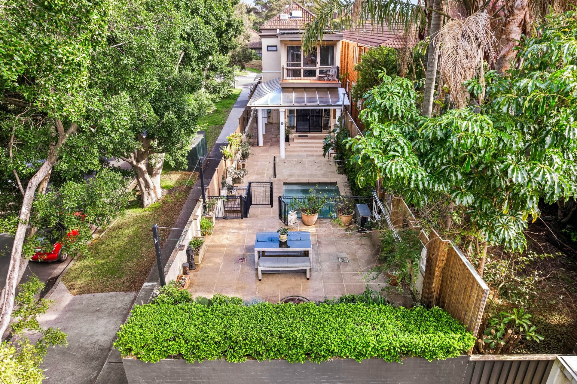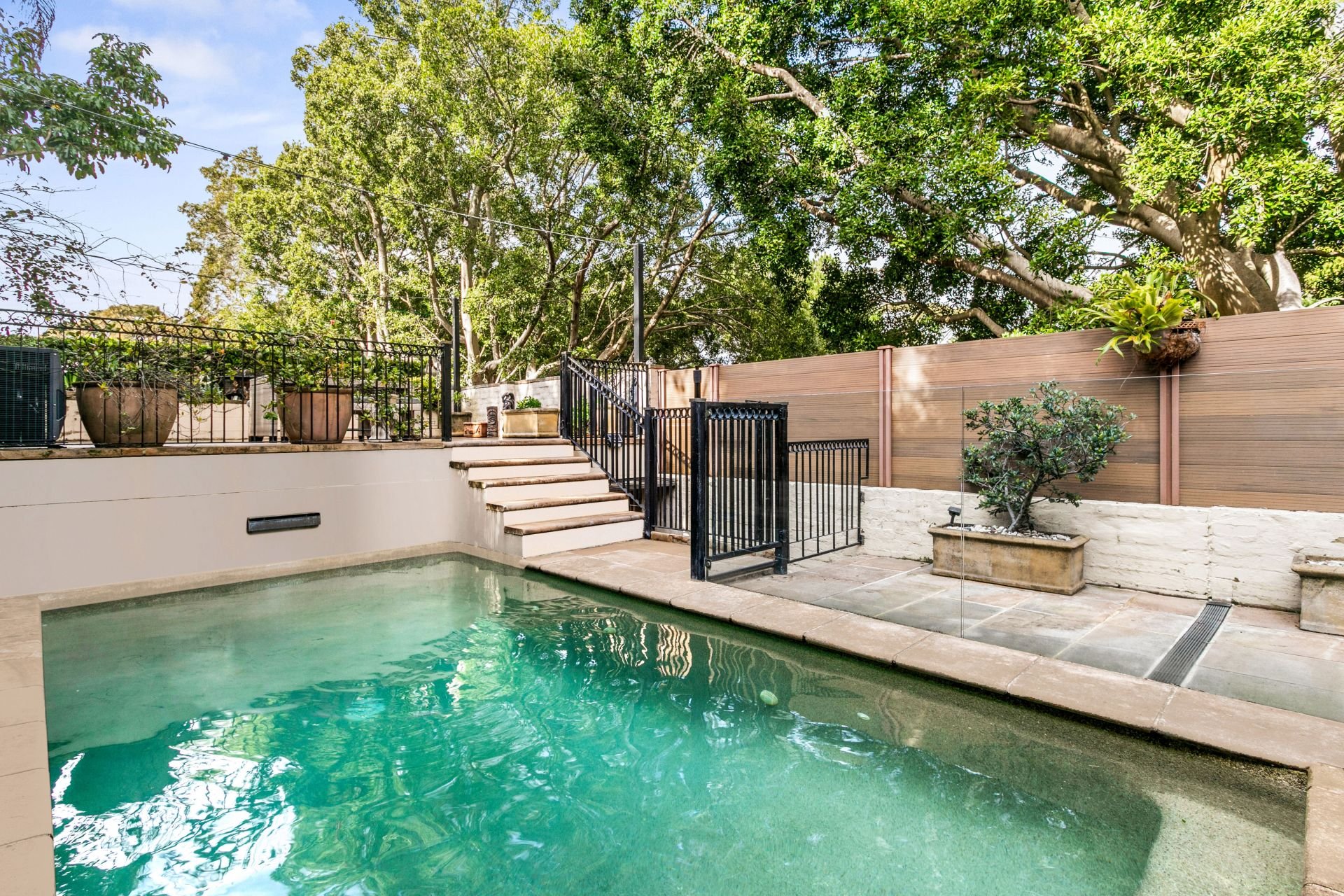 • Heated pool, sandstone courtyard, and leafy outdoor dining terrace