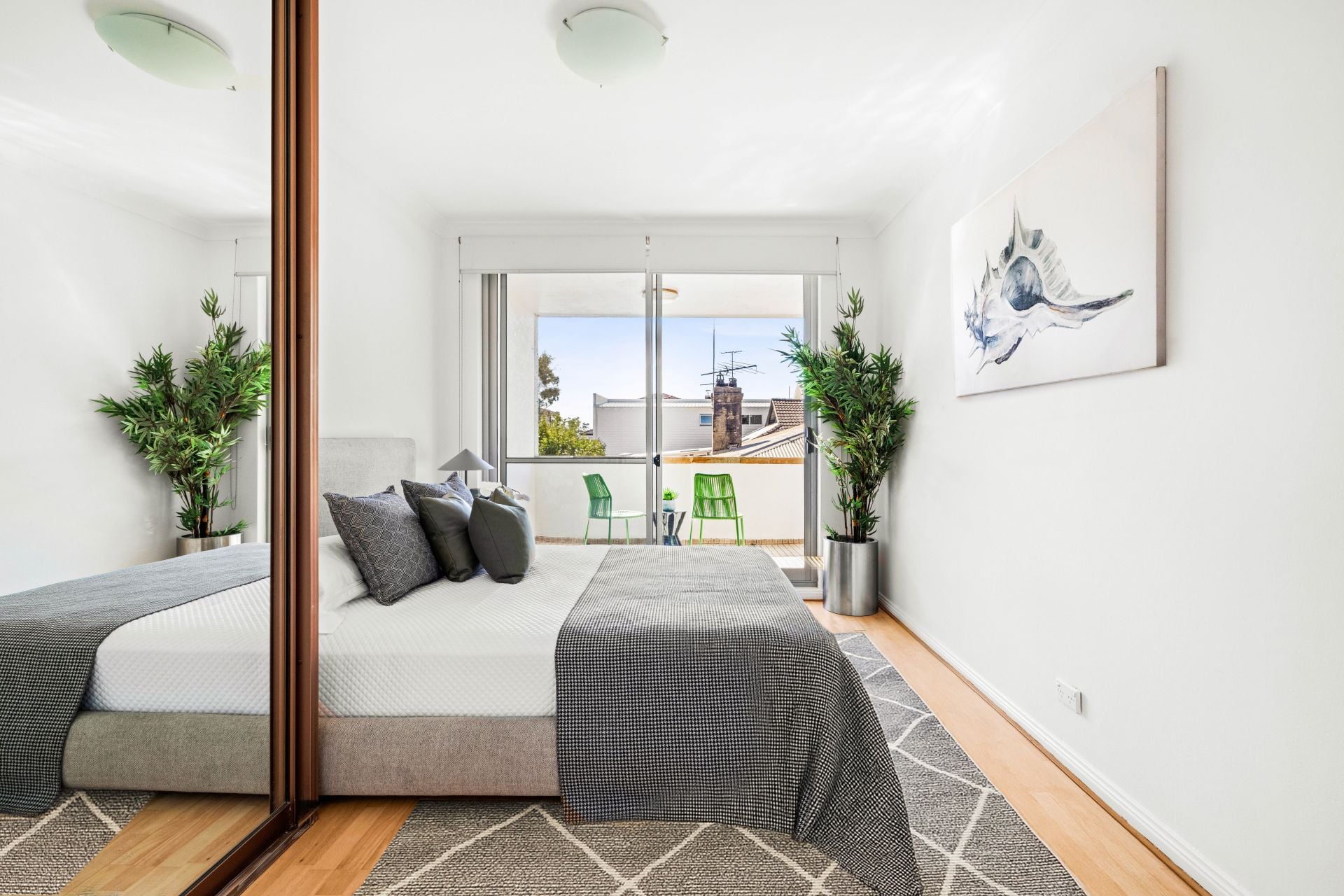 • Spacious bedroom with built-in wardrobe and balcony access