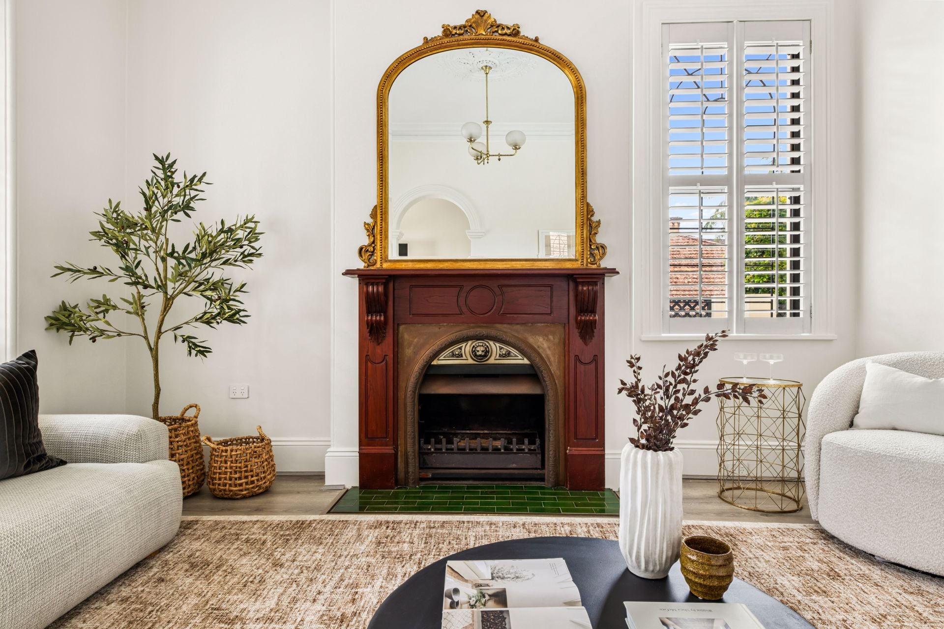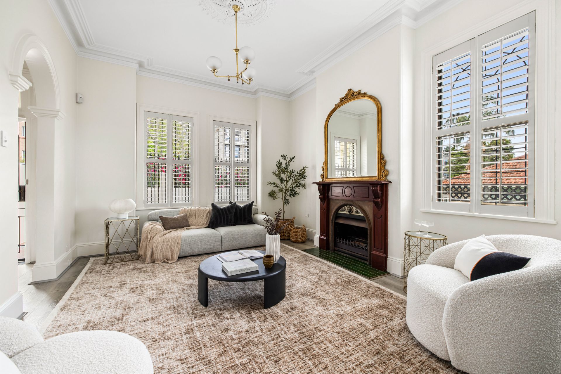 • Original fireplaces, soaring ceilings, and elegant arches