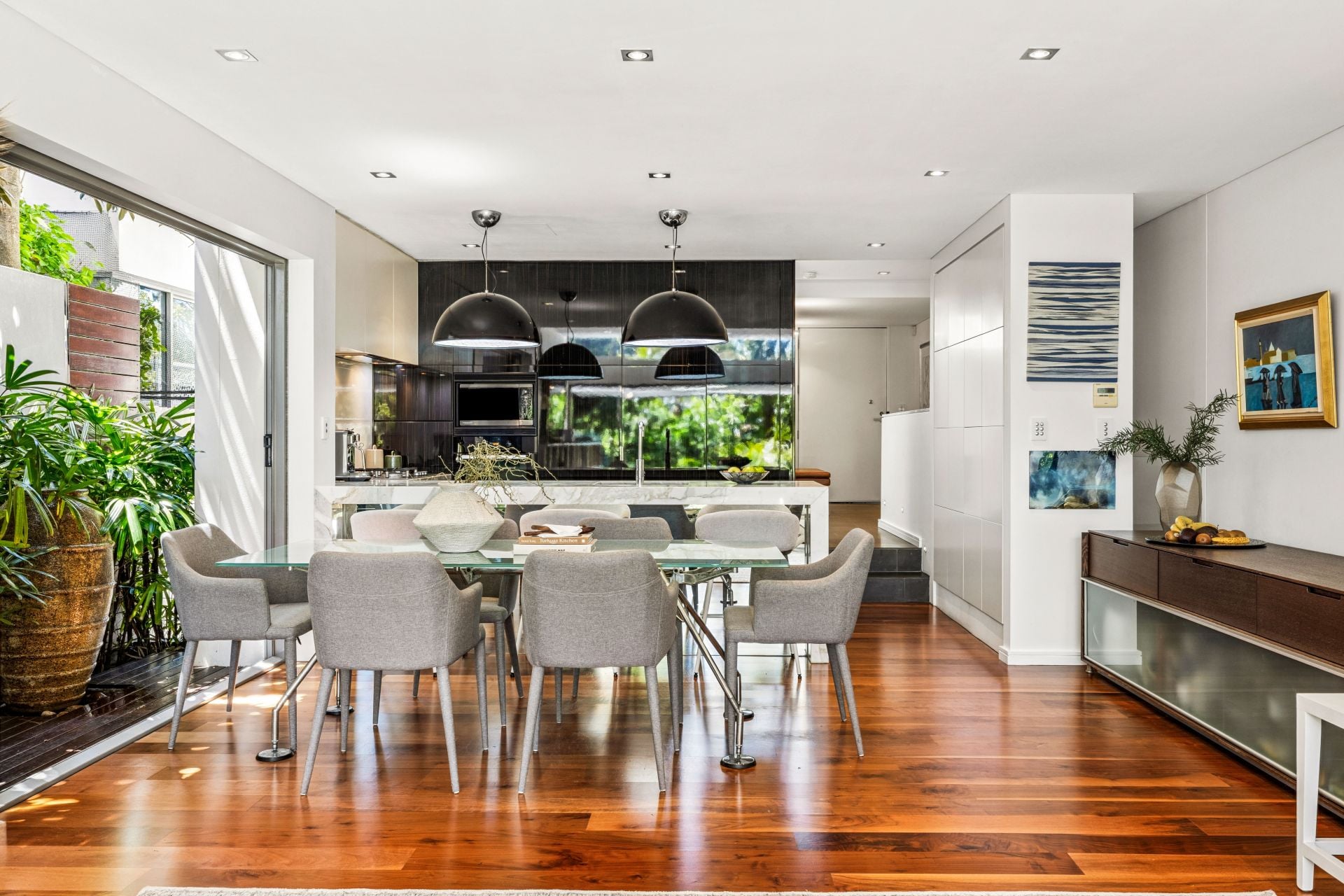 - Spacious open plan living/dining area connecting seamlessly to the outdoor entertaining deck with built-in BBQ and sun-bathed private garden