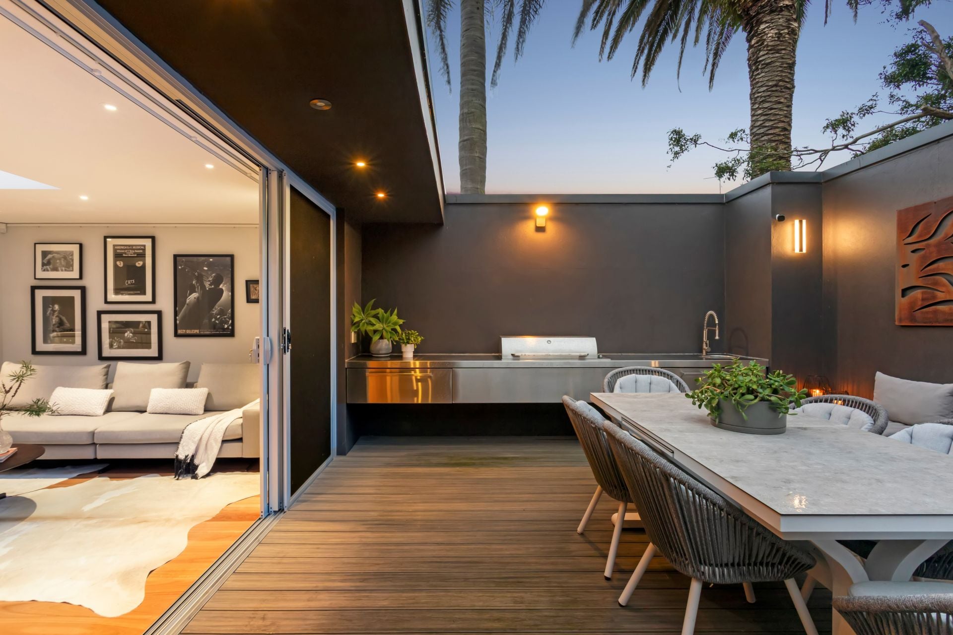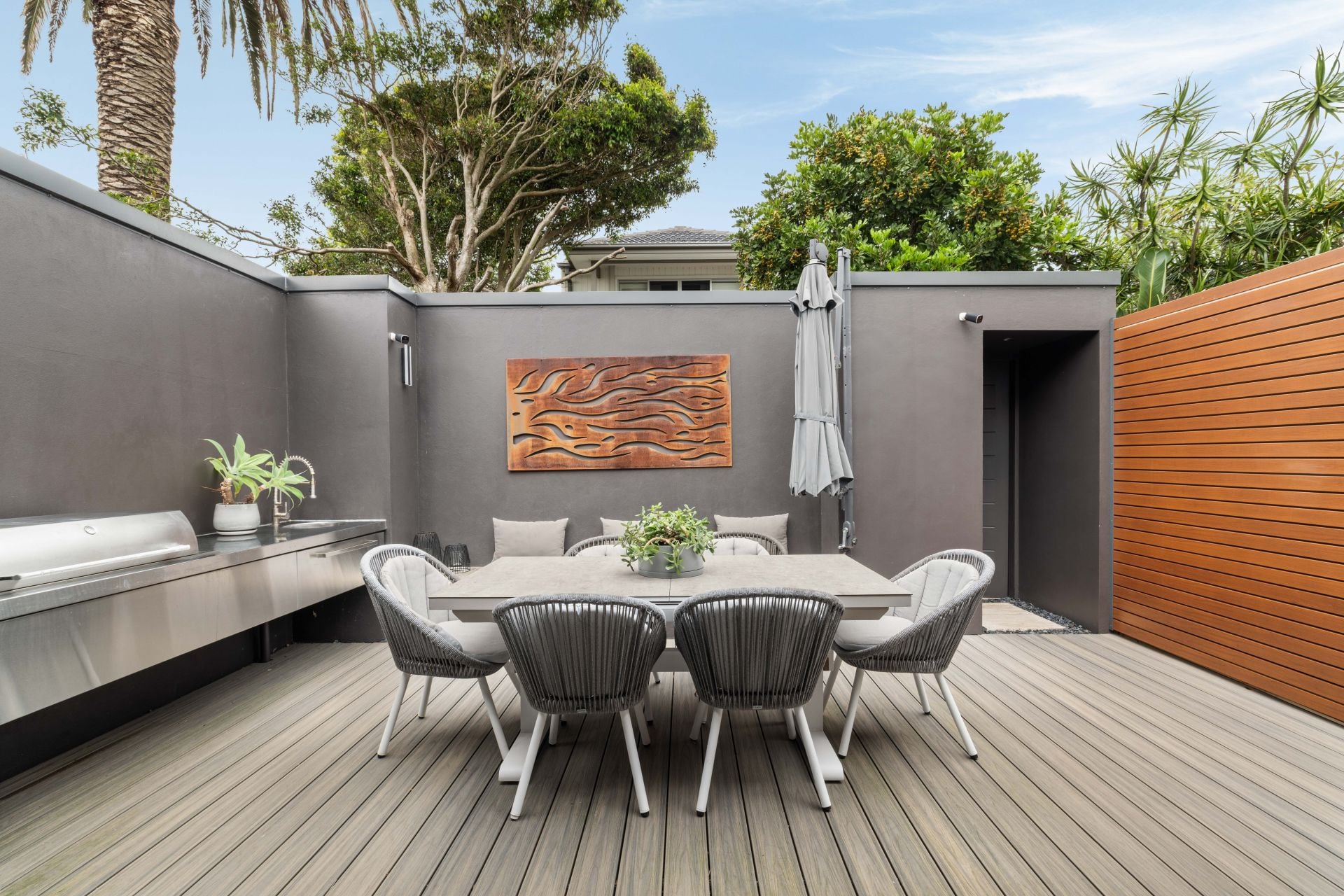 • Private north-facing entertainment terrace with custom seating and outdoor kitchen