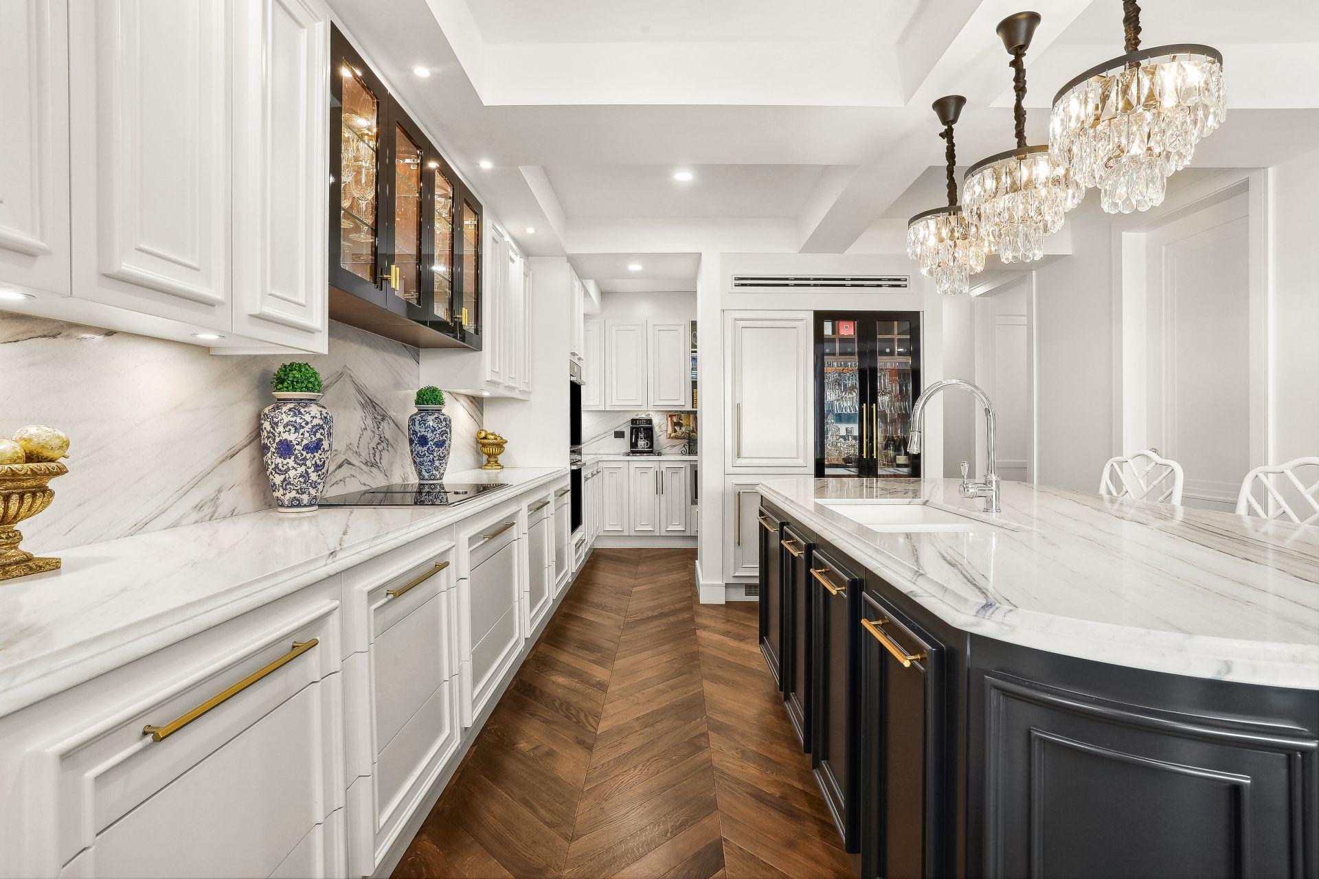 - Chef's kitchen with marble island, butler's pantry, integrated fridge