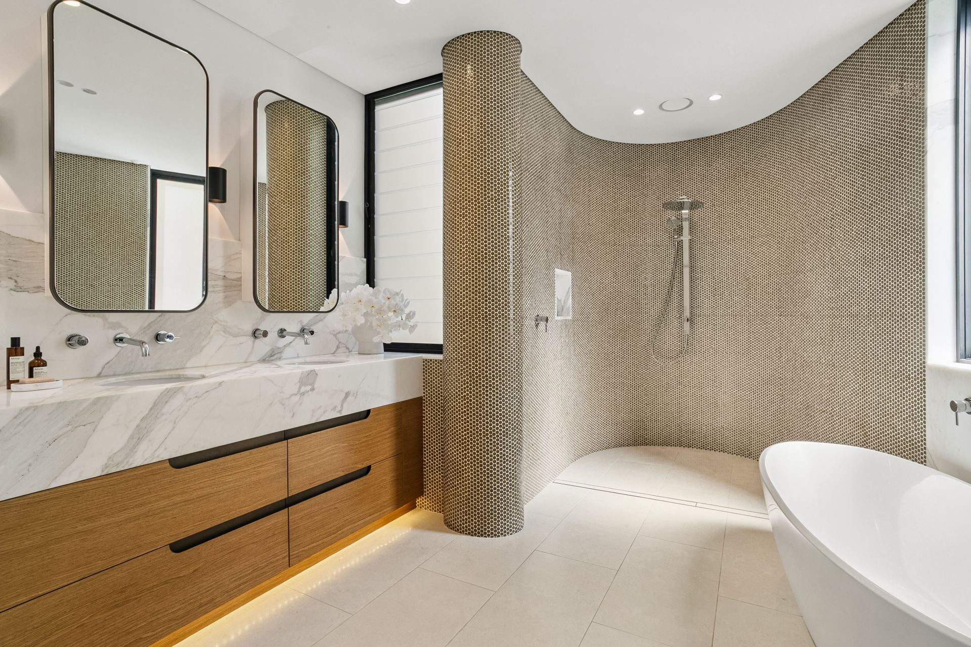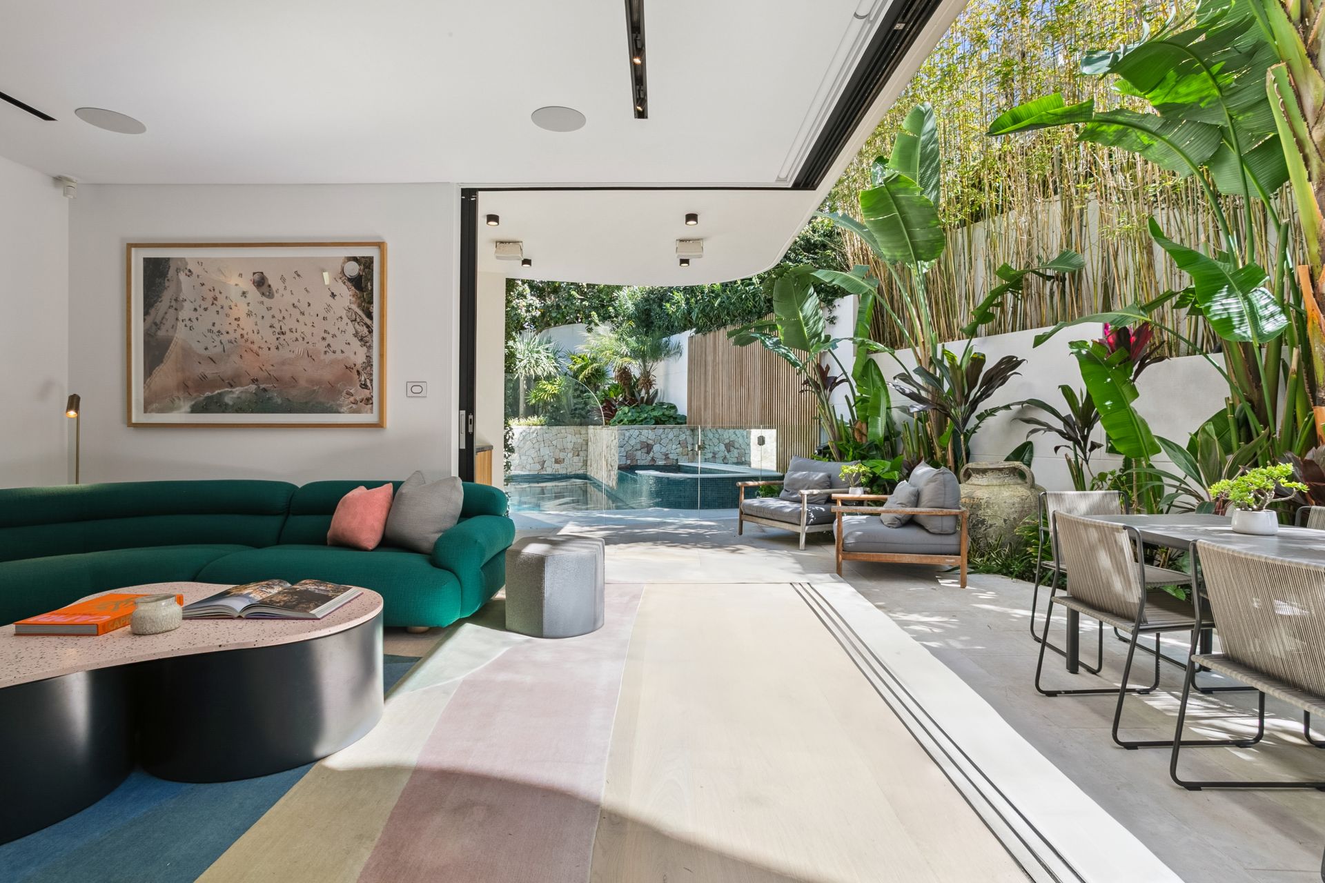 From epic sunrises to sunset entertaining, this Tamarama masterpiece delivers the ultimate resort-style lifestyle just 400m to the sand and surf, with beach path access at the end of the street. Wake to panoramic ocean views, watch whales pass by from your yoga studio, and end the day with moonlit swims in your heated pool.