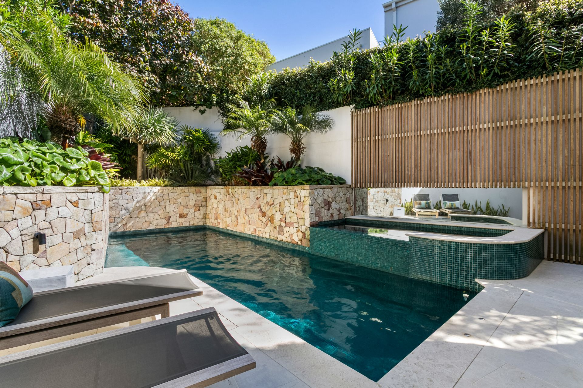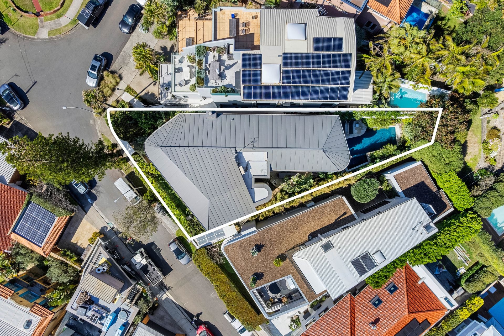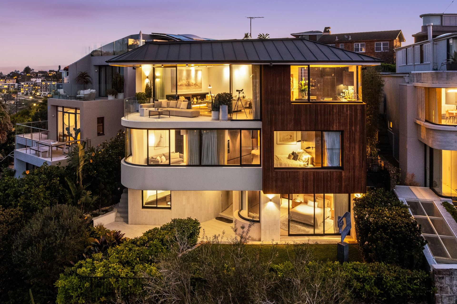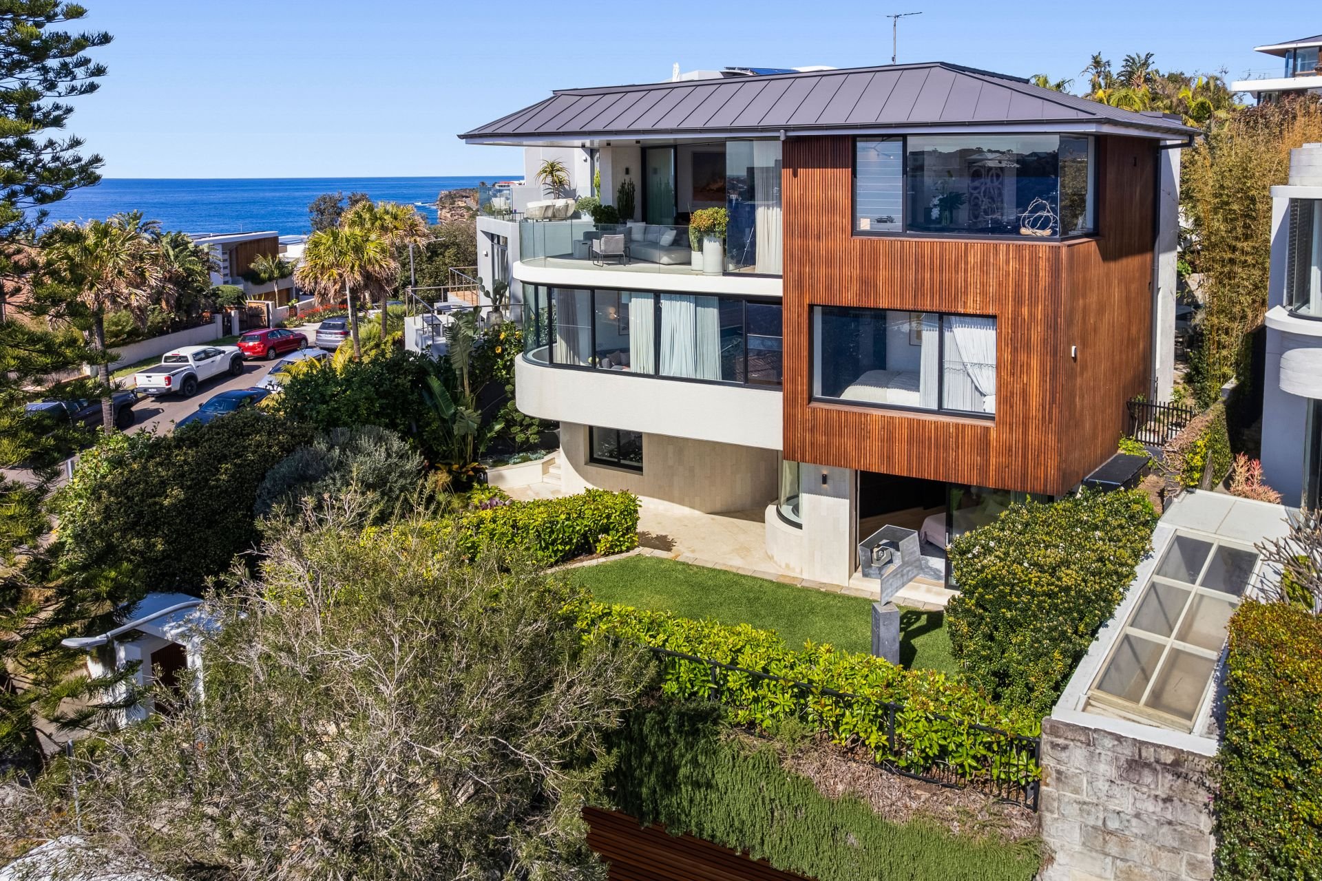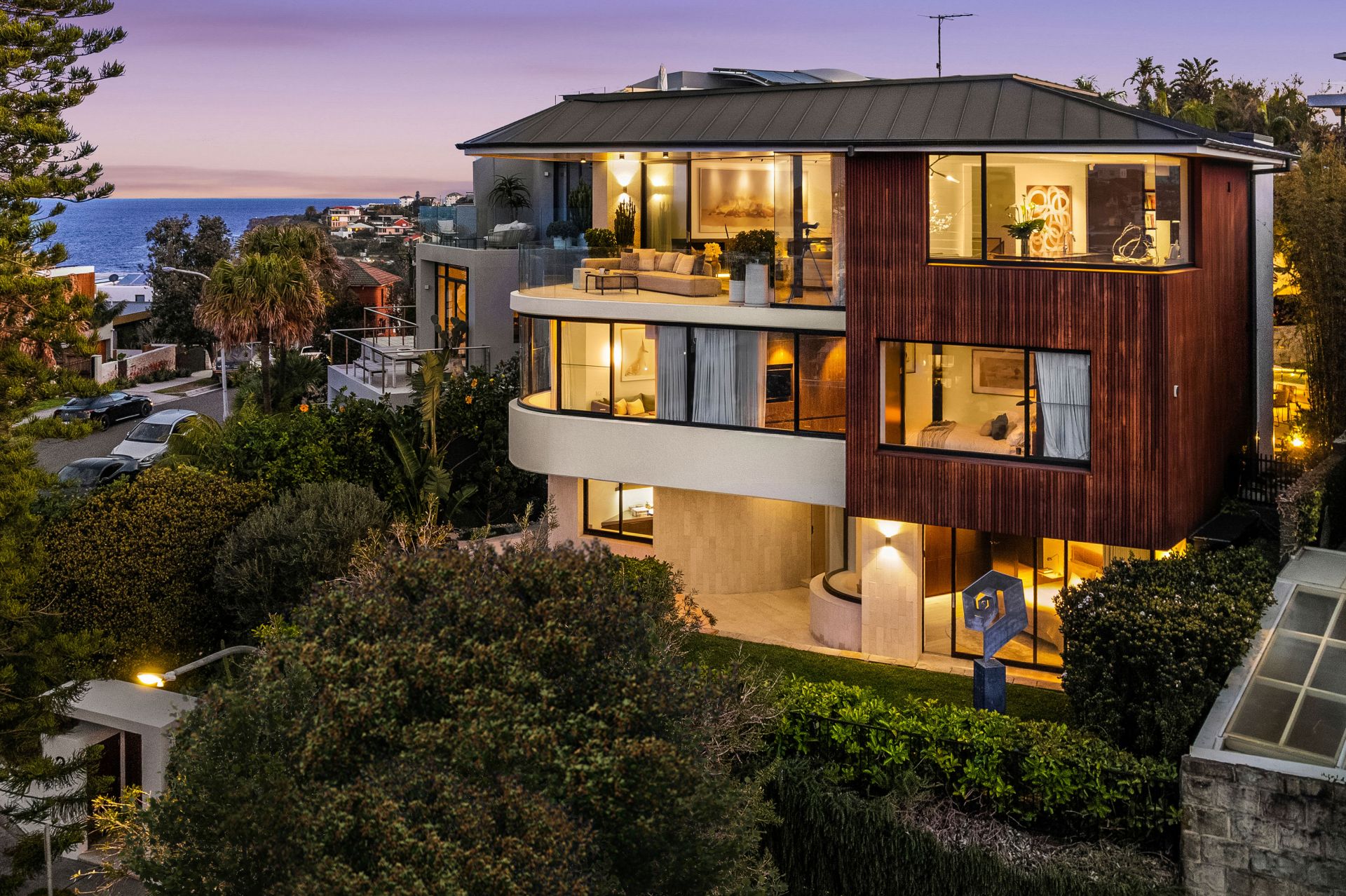 Designed by Porebski Architects with interiors by Decus Interiors. Perfect north-east aspect dedicated to wellness, indulgence and effortless beachside living. Tropical resort-style gardens make day to day living a dream while vast indoor and outdoor entertaining spaces merge seamlessly to the ocean backdrop. Smart home automation and lift access from triple garaging to all three levels make easy living.