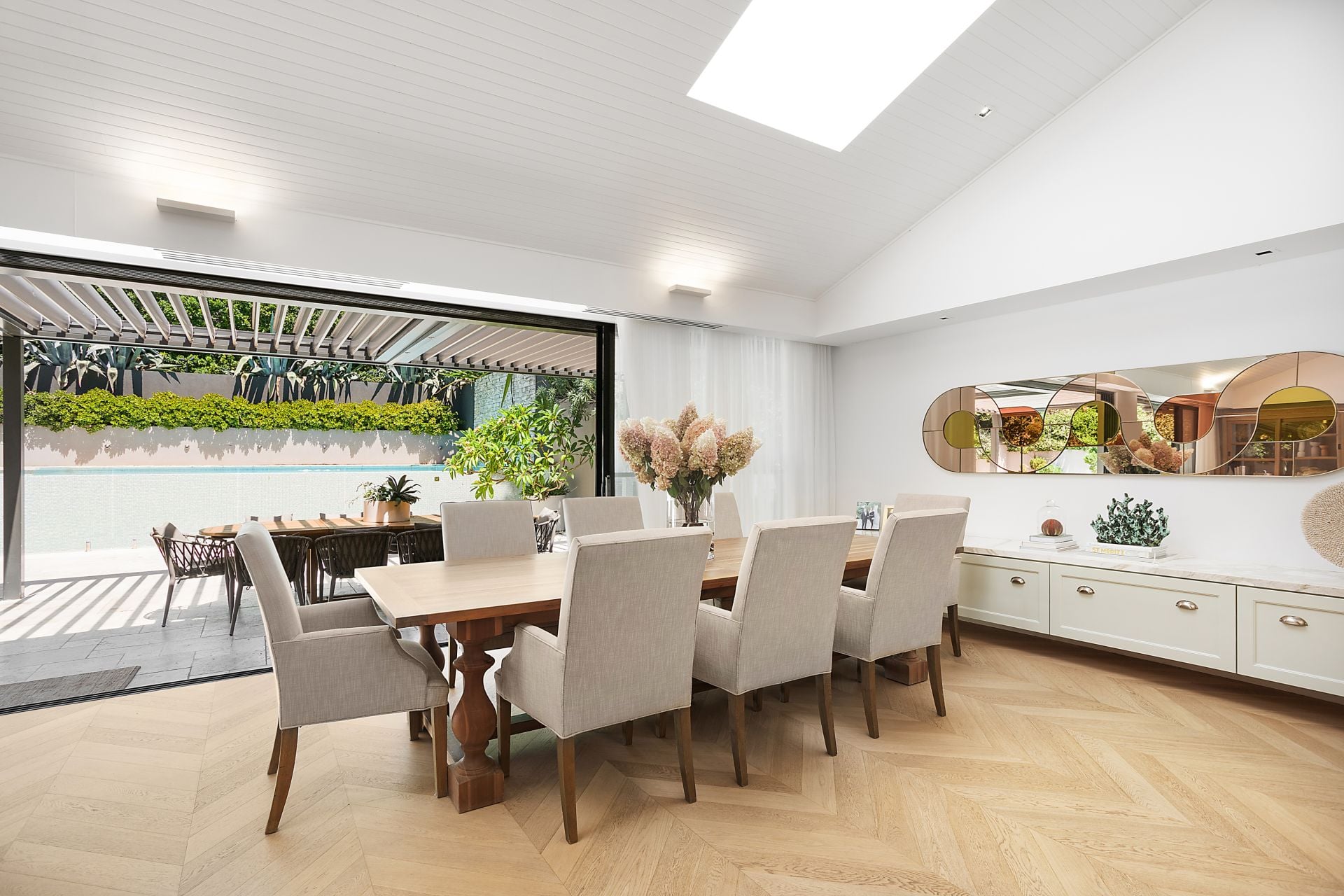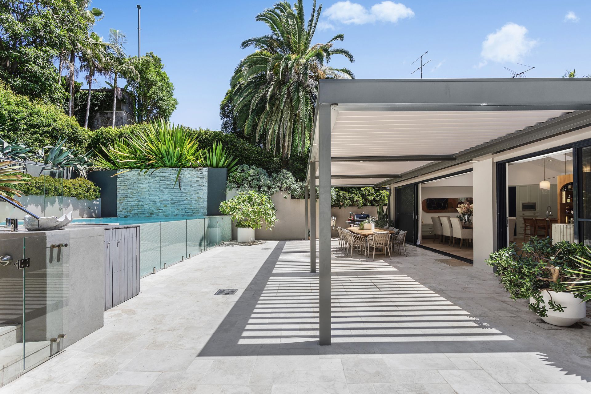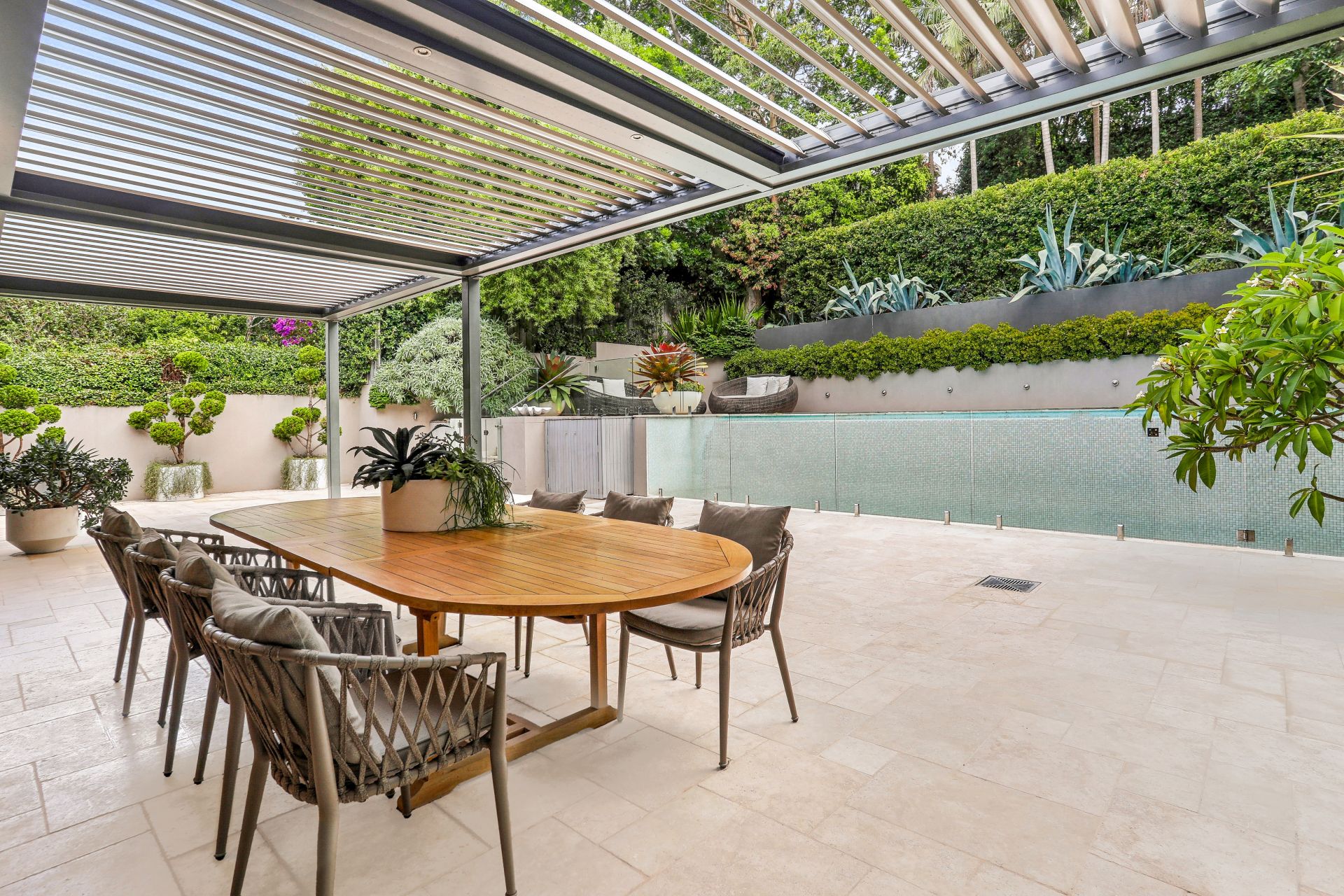 Designed for effortless living and entertaining this beautiful home boasts streamlined interiors with spacious open-plan living and dining, two-way gas fire place, a custom built cocktail bar, and a gourmet Calacatta marble kitchen fitted with European appliances, all seamlessly flowing out to an exceptionally private resort-style alfresco and garden. Enjoy the serenity of this sunny oasis complete with a generous Vergola covered entertaining area and a heated pool. Soaring ceilings amplify a generous sense of space with skylights and floor-to-ceiling glass bringing in natural light. Each of the three king-size bedrooms enjoy its own luxe ensuite, north-facing balconies and a tranquil leafy outlook, while the home office or fourth bedroom opens to a private rear garden.