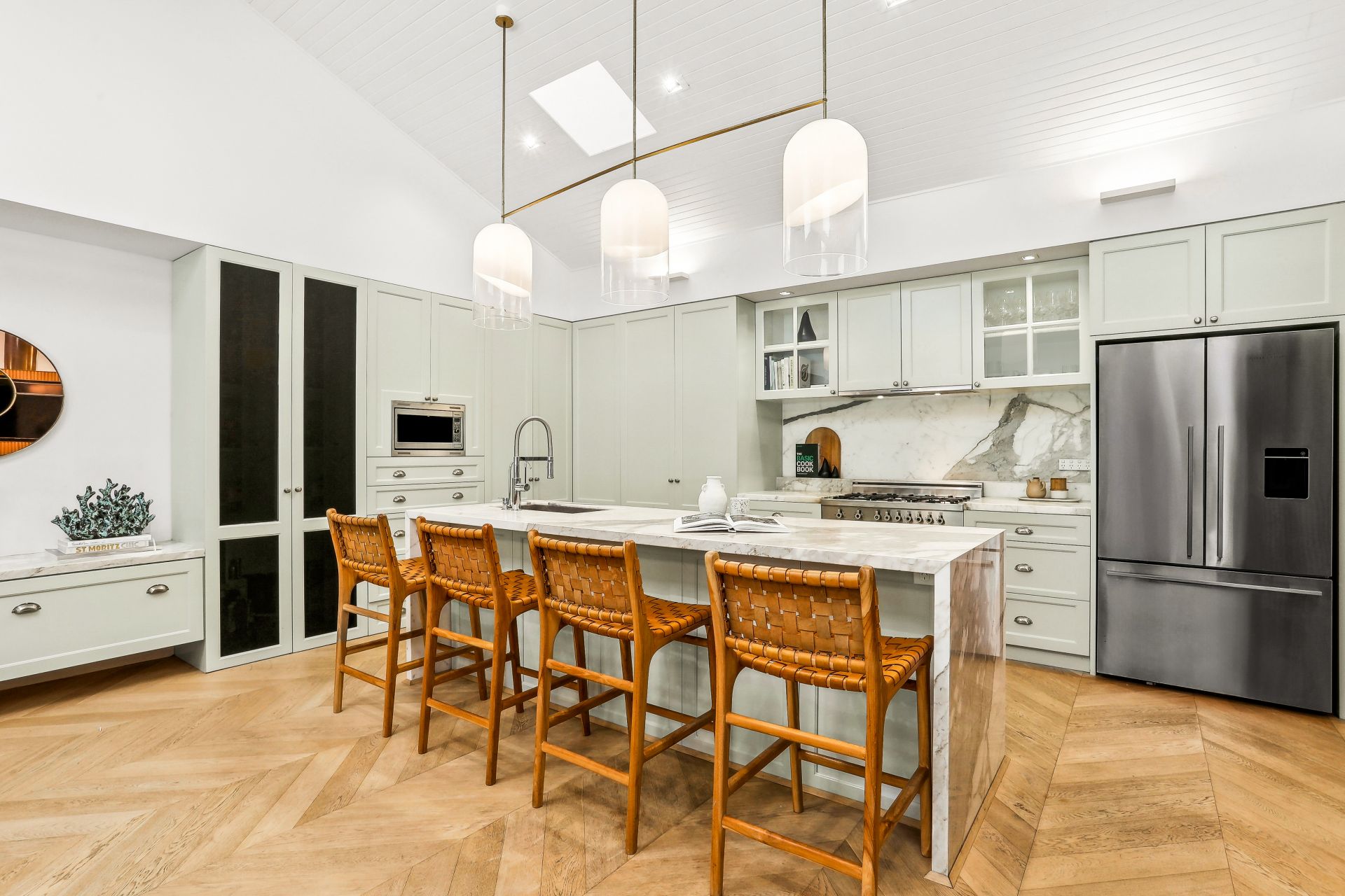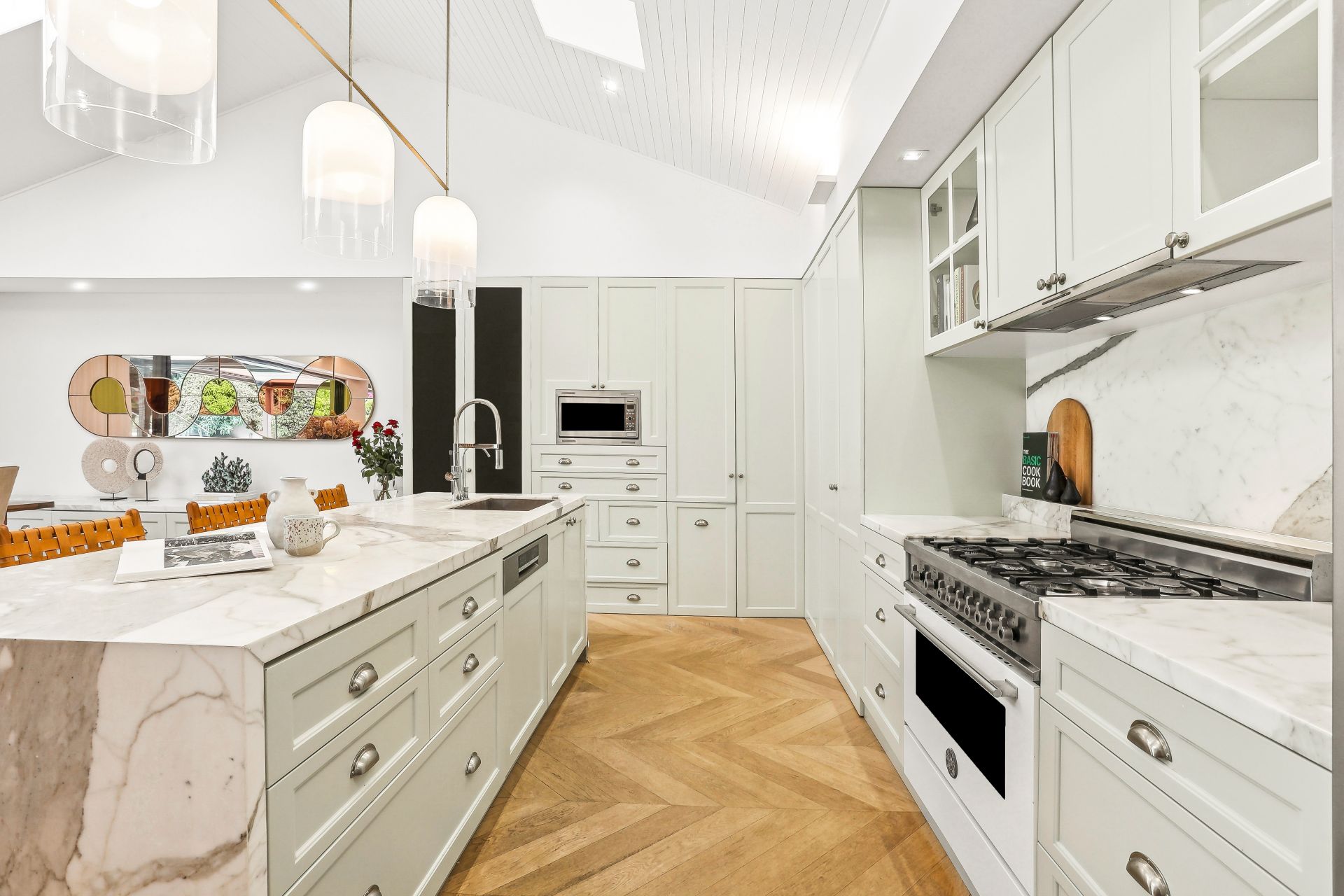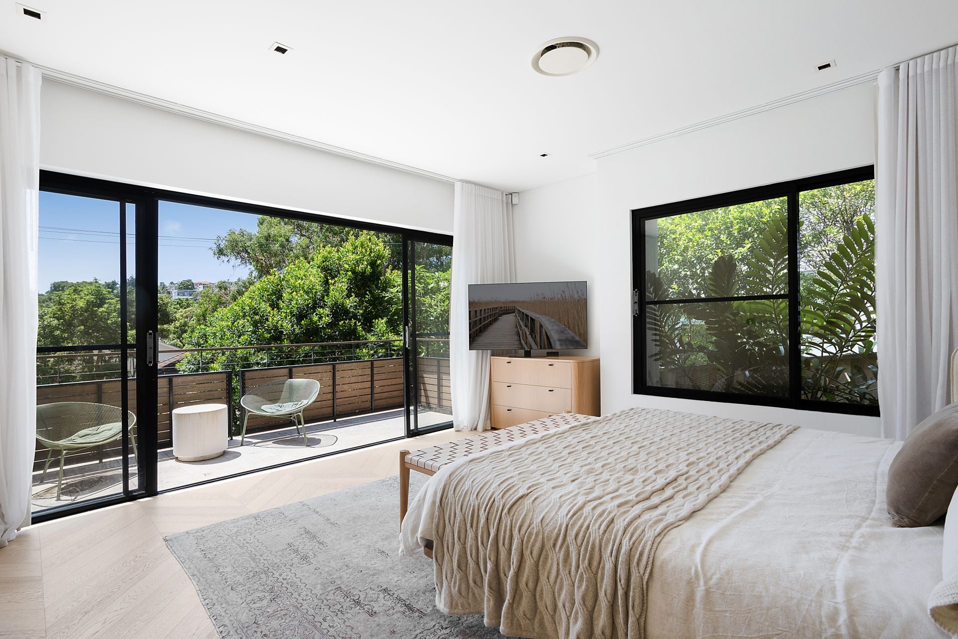 Designed for effortless living and entertaining this beautiful home boasts streamlined interiors with spacious open-plan living and dining, two-way gas fire place, a custom built cocktail bar, and a gourmet Calacatta marble kitchen fitted with European appliances, all seamlessly flowing out to an exceptionally private resort-style alfresco and garden. Enjoy the serenity of this sunny oasis complete with a generous Vergola covered entertaining area and a heated pool. Soaring ceilings amplify a generous sense of space with skylights and floor-to-ceiling glass bringing in natural light. Each of the three king-size bedrooms enjoy its own luxe ensuite, north-facing balconies and a tranquil leafy outlook, while the home office or fourth bedroom opens to a private rear garden.